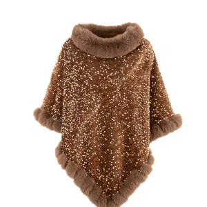 Manteau à sequins avec écharpe intégrée gris TDM93625