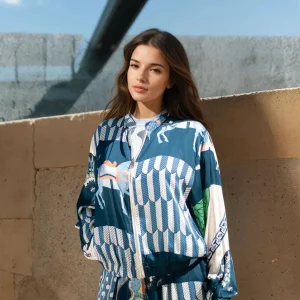 Veste imprimée chevaux en viscose soie KD8772VS-2