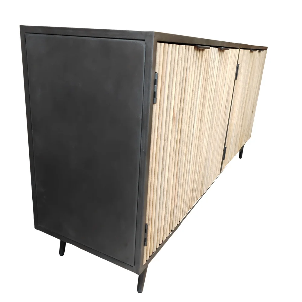 Avec quatre portes en lames de manguier massif, finition vernis pour le bois et le métal finition ciré noir.
