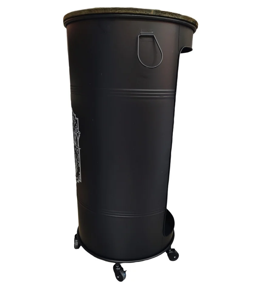 Meuble bar bidon sur roulettes.