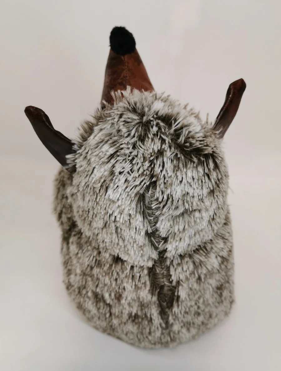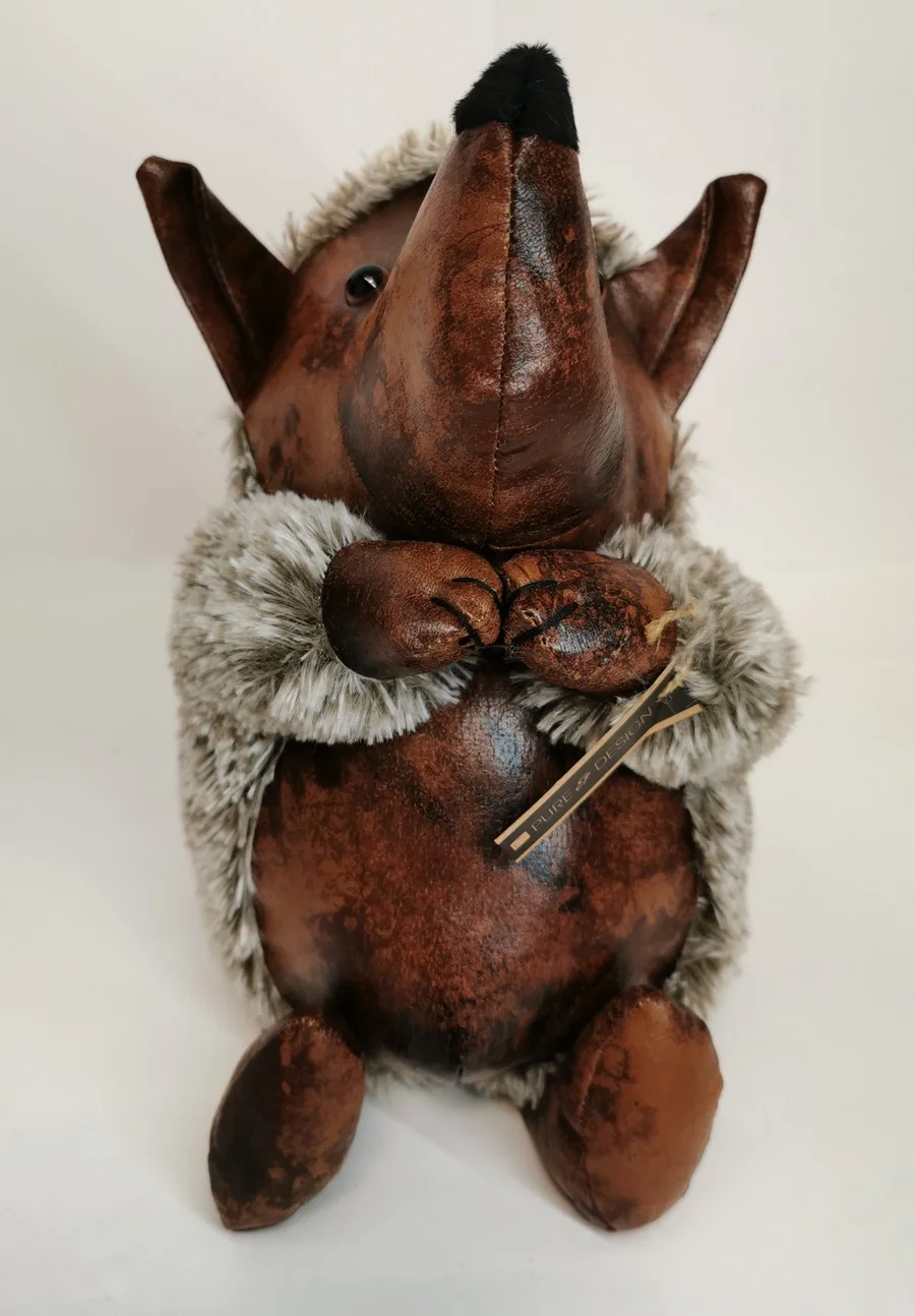 Cette jolie taupe en tissu et aspect vieux cuir (rempli de sable).