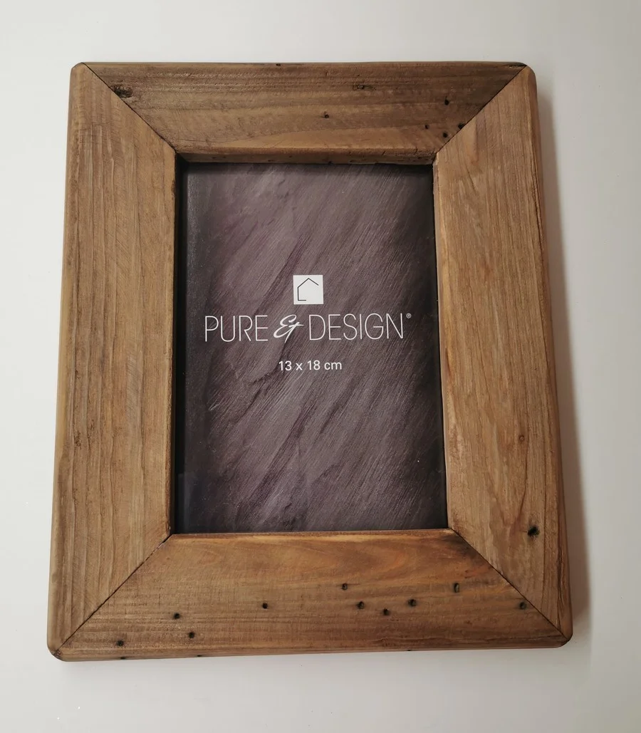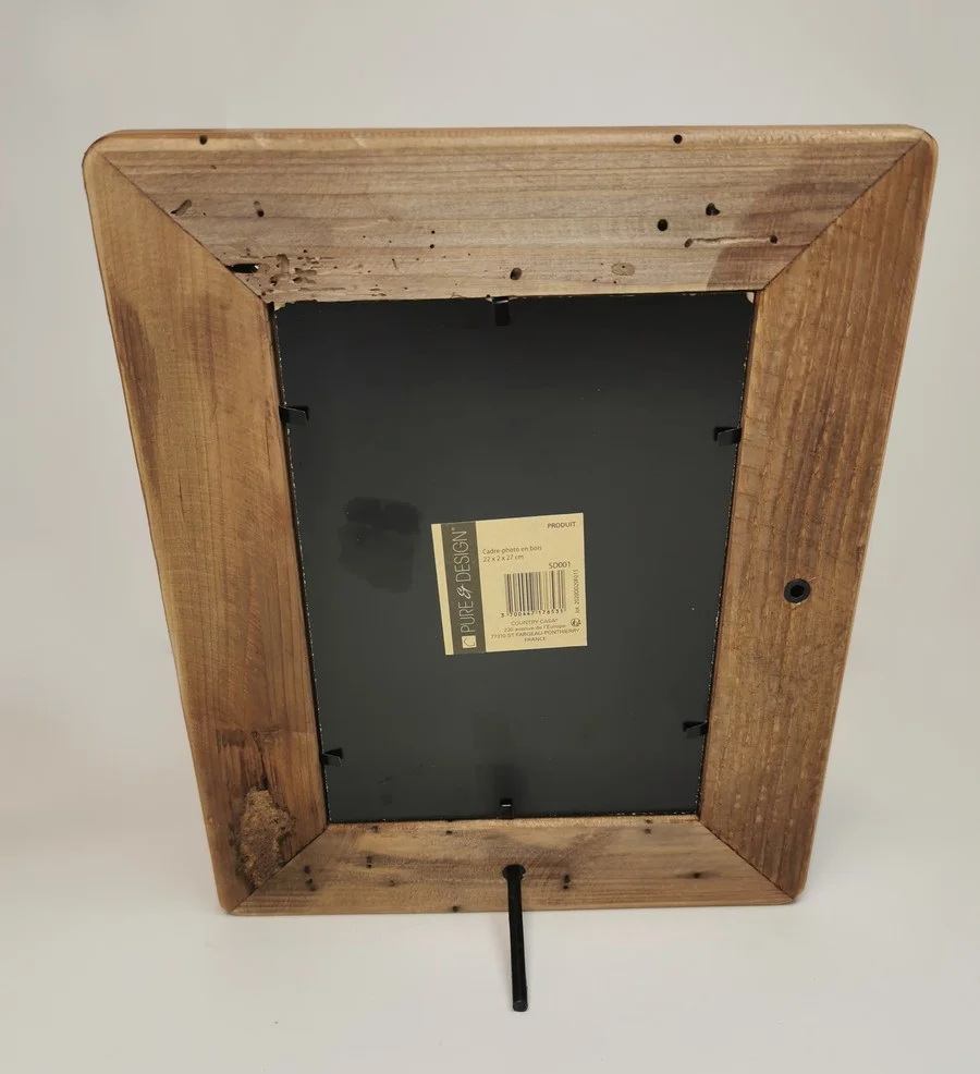 Ce cadre met en avant son aspect massif effet bois vieilli brossé.