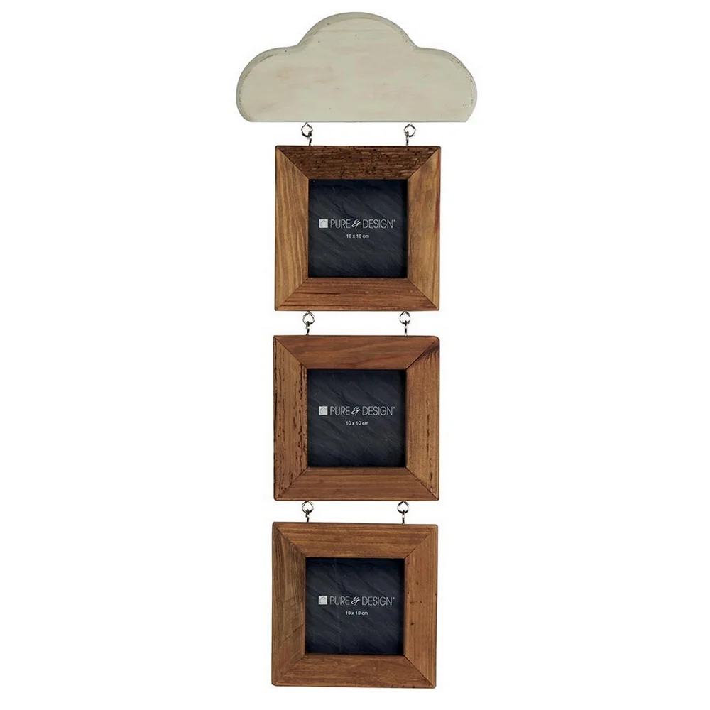 Cadre trois photos finition bois rustique suspendu à un nuage blanc. Ce cadre met en avant son aspect massif effet bois vieilli. Une belle décoration pour mettre en valeur des photos idéal pour la chambre de votre enfant une fois fixé au mur.