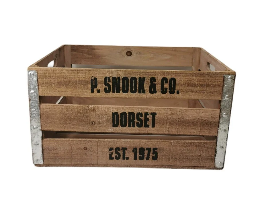 Authentique et originale, choisissez cette caisse en bois et acier avec marquage « P.SNOOK & CO ».