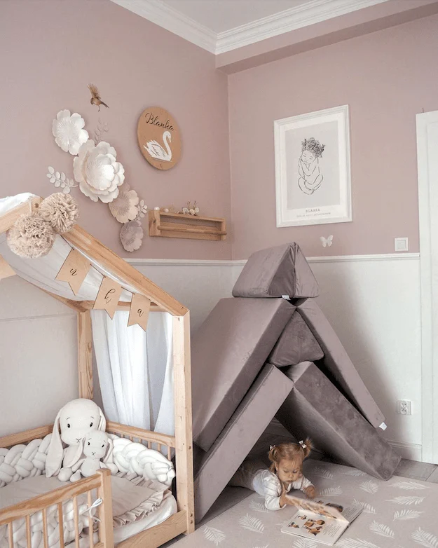 Avec ses modules aux formes variées et rembourrés en mousse, le canapé de motricité est idéal pour créer chez soi une aire de jeu que nos enfants modifieront au gré de leurs envies.