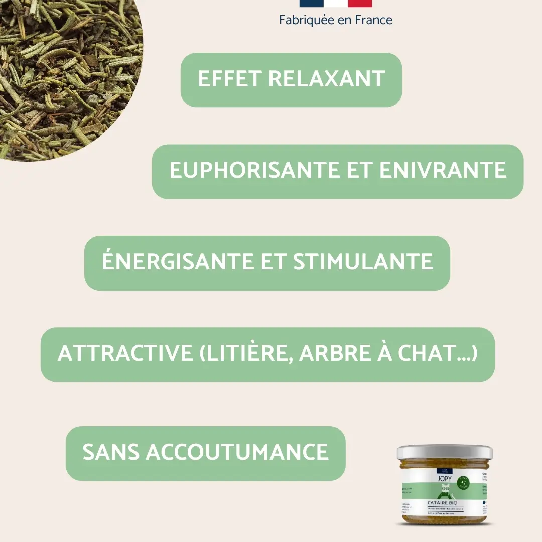 Offrir de la cataire à votre félin est une récompense parfaite, d’autant plus que la cataire Jopy, bio et cultivée en France, est totalement inoffensive. Votre chat peut en profiter en toute sécurité. Certains seront davantage attirés par la cataire seule, tandis que d’autres réagiront mieux à une combinaison de plantes, un comportement influencé par leur patrimoine génétique.