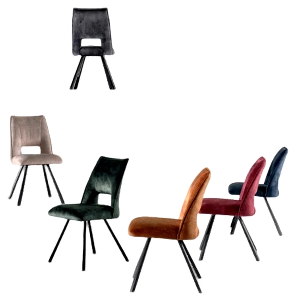 Découvrez les nouvelles chaises Aix très originales et élégantes! recouverte d’un tissu velours couleur vert kaki.