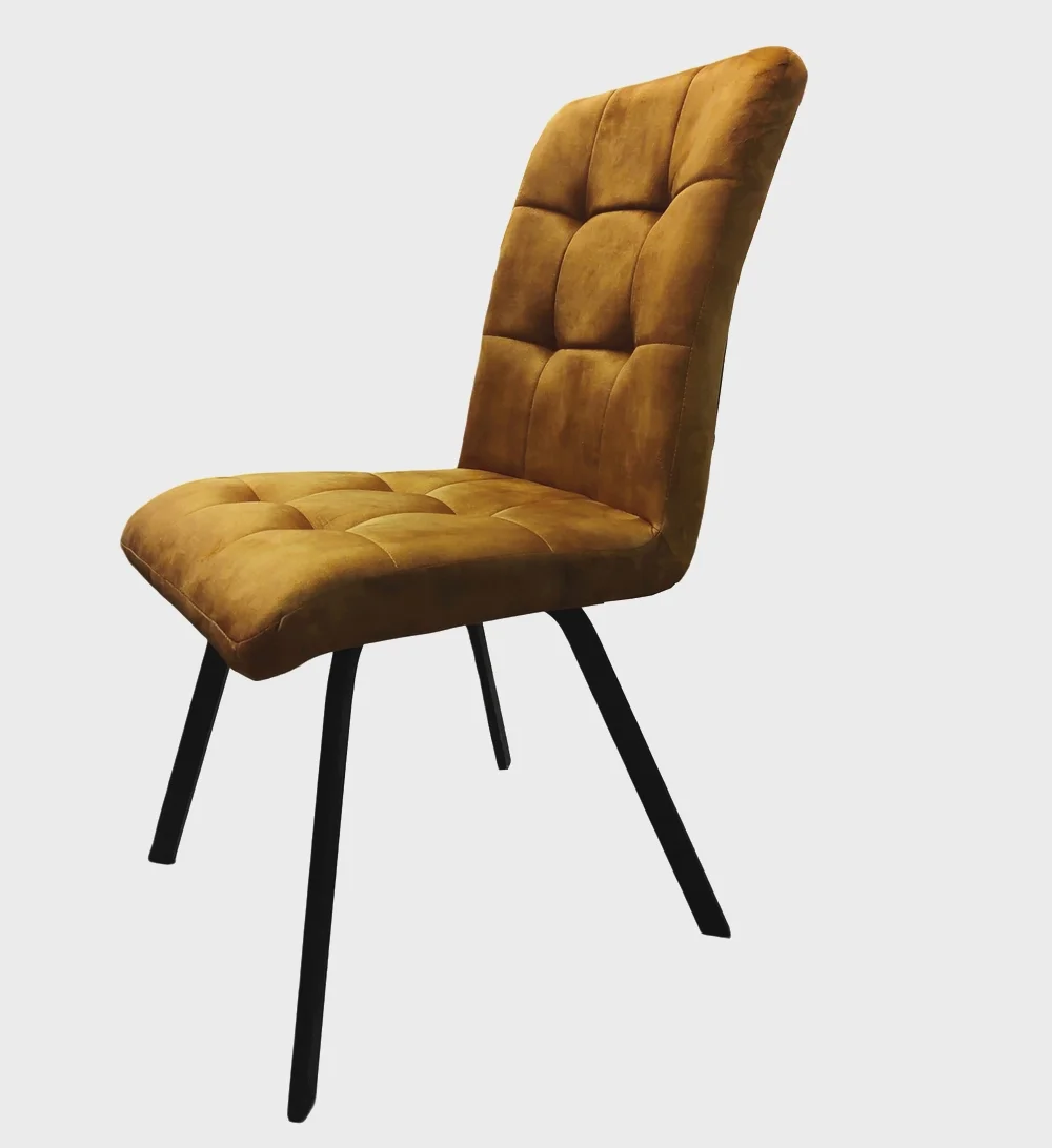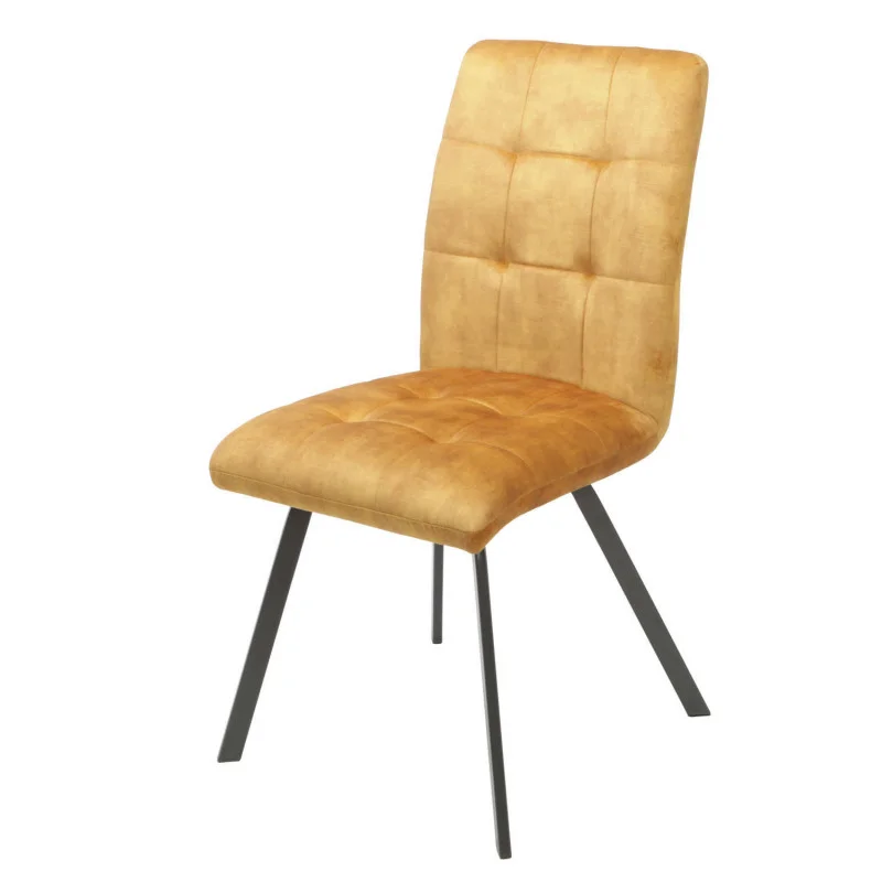 Découvrez les nouvelles chaises ASCOT très élégantes et originales! recouverte d’un tissu aspect velours couleur gold mousse dossier 17kgs et 25kgs/m3 assise élasthanne 30kgs/m3