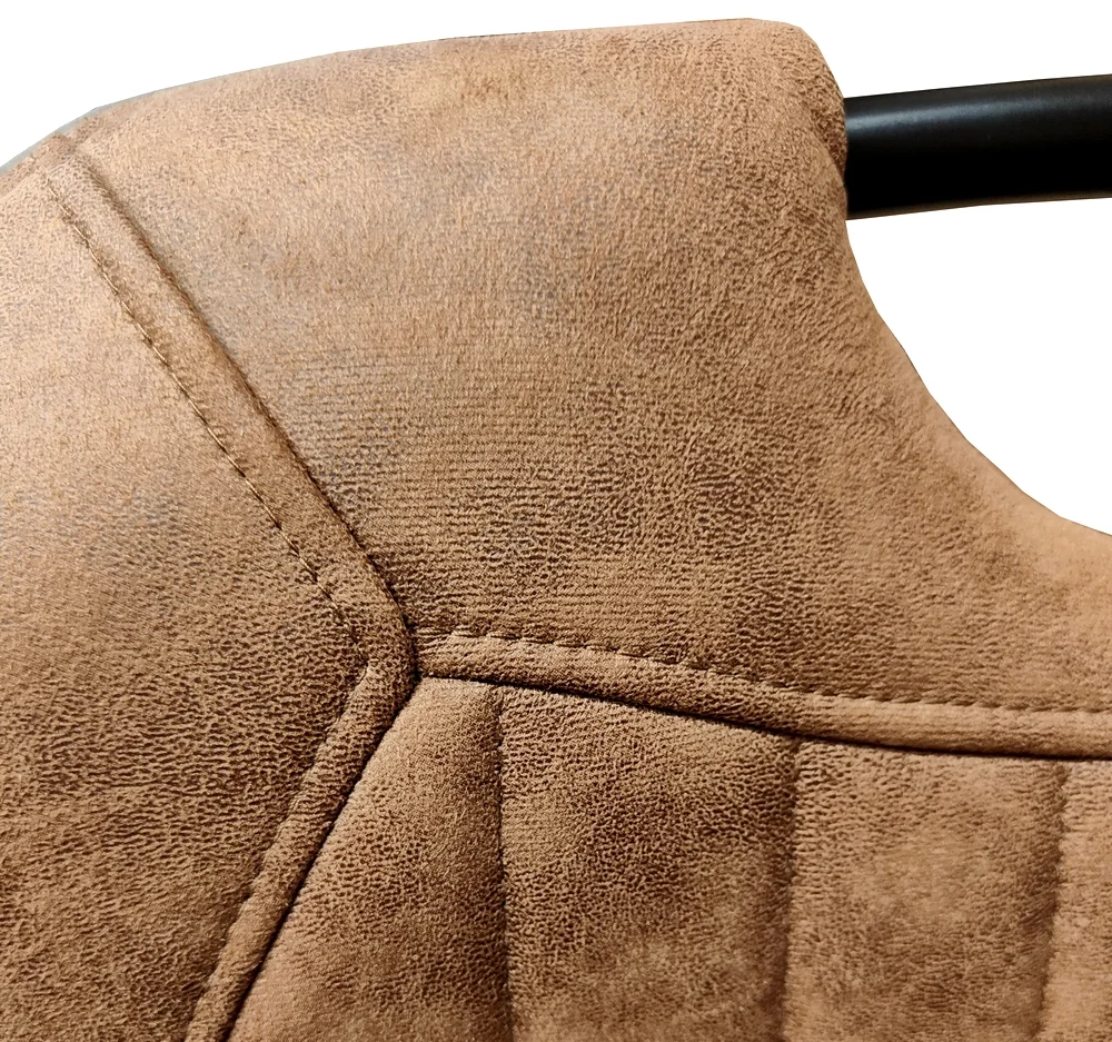Chaise de bar Cordoba – Assise mousse polyuréthane 30K/m³ dossier 24K/m³ – Réglable en hauteur avec vérin à pompe – Recouvrement 100% microfibre couleur havane Avec repose pieds – Pied fer laqué noir- A monter