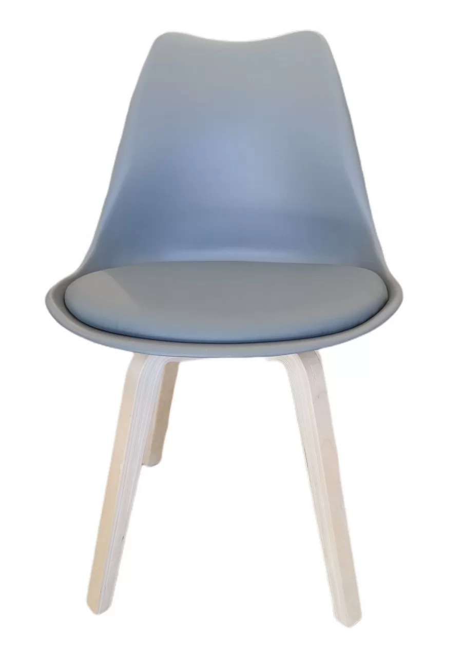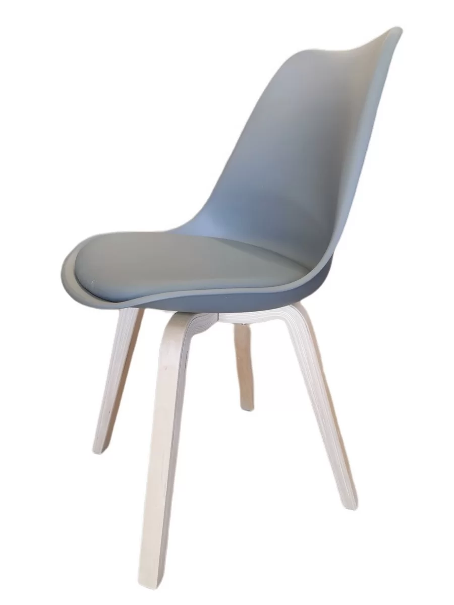 Chaise contemporaine gris souris, coquille PVC et assise matelassée de la collection Emy