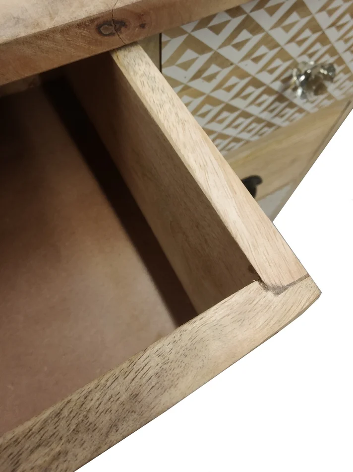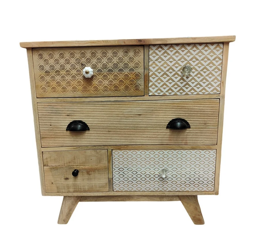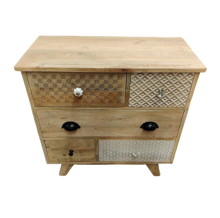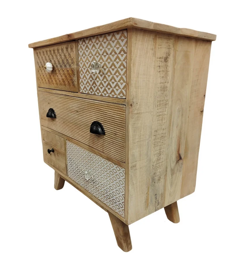 COMMODE 5 TIROIRS MANGUIER MASSIF DIFFERENTS TIROIRS 75 X 38.5 X 75 CM