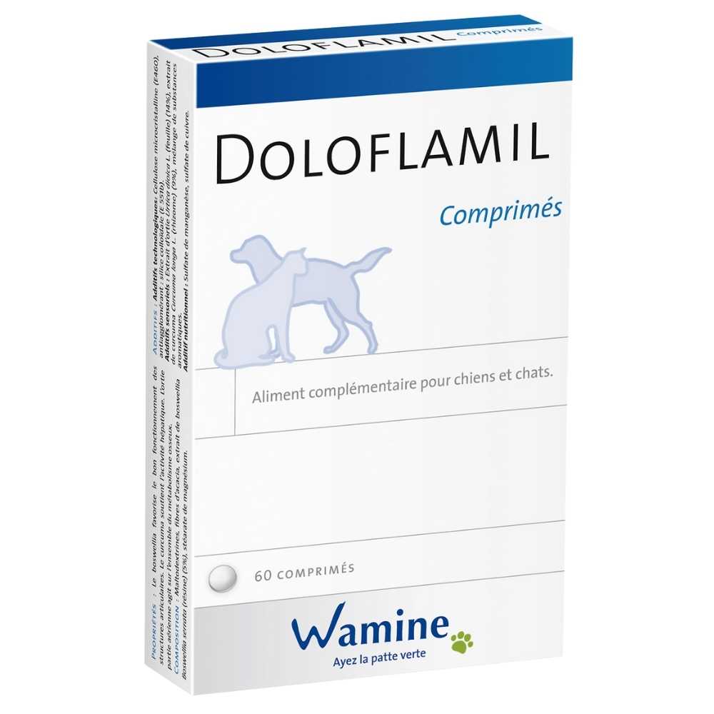 Doloflamil Comprimés est un aliment complémentaire aux extraits de plantes pour chiens et chats du laboratoire français Wamine qui contribue au confort locomoteur et à la souplesse des articulations.