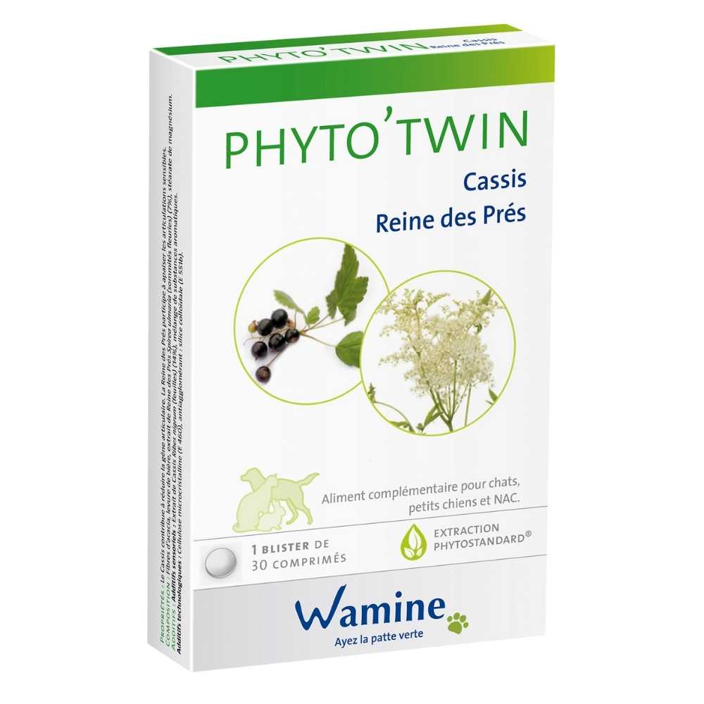 Phyto’twin Cassis/Reine des prés du laboratoire français Wamine, est un aliment complémentaire adapté en cas d’inconfort articulaire chez le chien, le chat et les NACs.