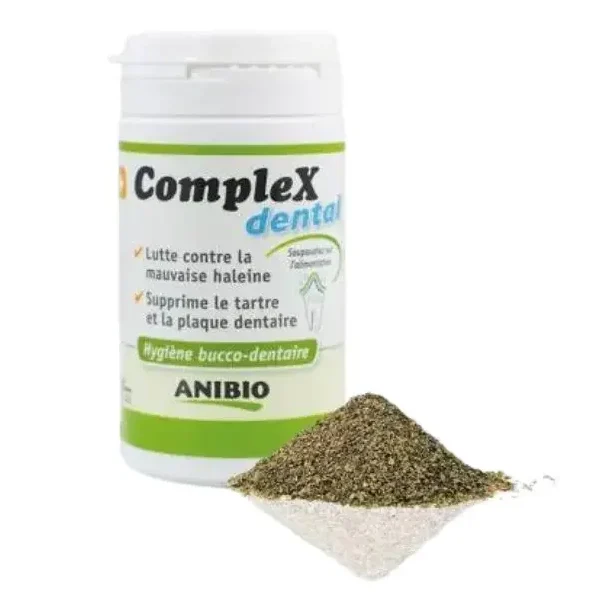 CompleX Dental – plaque dentaire, tartre et haleine de la marque AniBio est un complément alimentaire pour chiens et chats , conçu pour éliminer durablement le tartre en cas d’inconfort ou de mauvaise haleine et d’assurer une hygiène bucco-dentaire idéale.