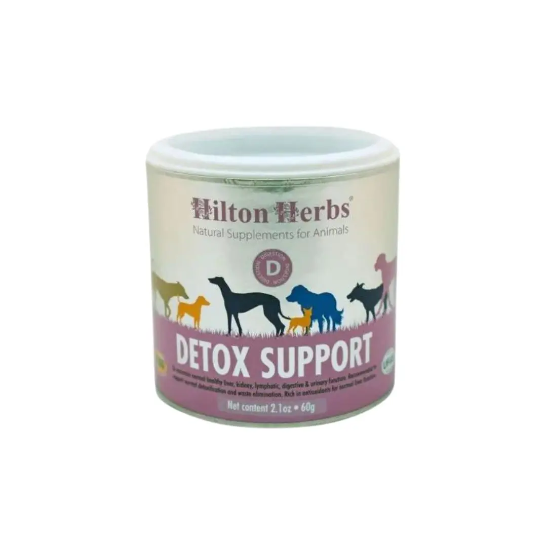 Detox Support est un complément alimentaire pour chiens, composé uniquement d’herbes séchées telles que le pissenlit, le chardon-Marie et la bardane, reconnues pour leurs propriétés dépuratives et détoxifiantes. Ce complément stimule les fonctions digestives, lymphatiques, hépatiques et rénales de votre chien.