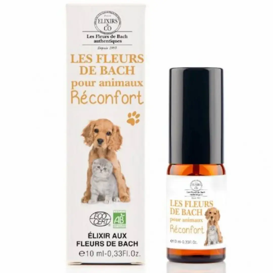 A base de végétaux naturels ces produits vont améliorer le bien-être de l’animal (chiens, chats, lapins, chevaux, oiseaux,…) lors de stress, agressivité, peur, déprime,… 100% naturel, le spray Pour animaux Réconfort, adapté pour les animaux de compagnie stressés (chiens, chats, chevaux, oiseaux,…) est composé de 7 fleurs de Bach Originales (Clématite, Dame d’onze heure, Hélianthème, Impatiente, Prunus, Gnavelle annuelle, Pommier sauvage) qui permettent d’apaiser les nerfs et la souffrance, de retrouver ses esprits, de surmonter la panique, de contrebalancer le ou les chocs, d’aider à la résolution, de ramener le calme et la tranquillité, et reprendre le contrôle de soi.