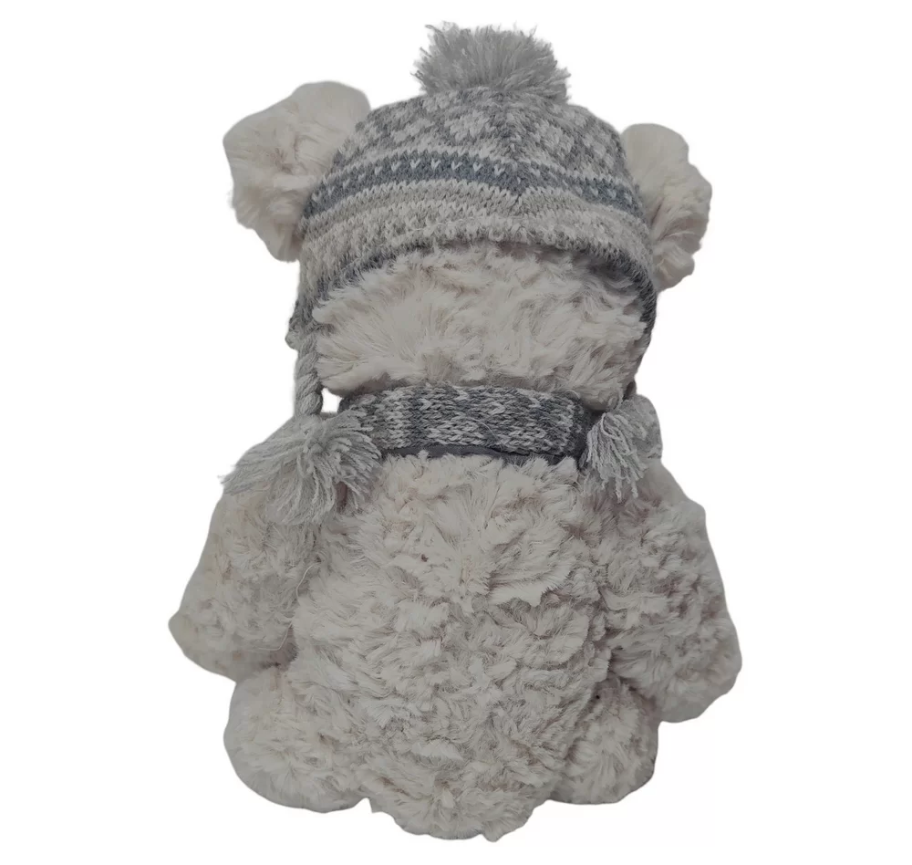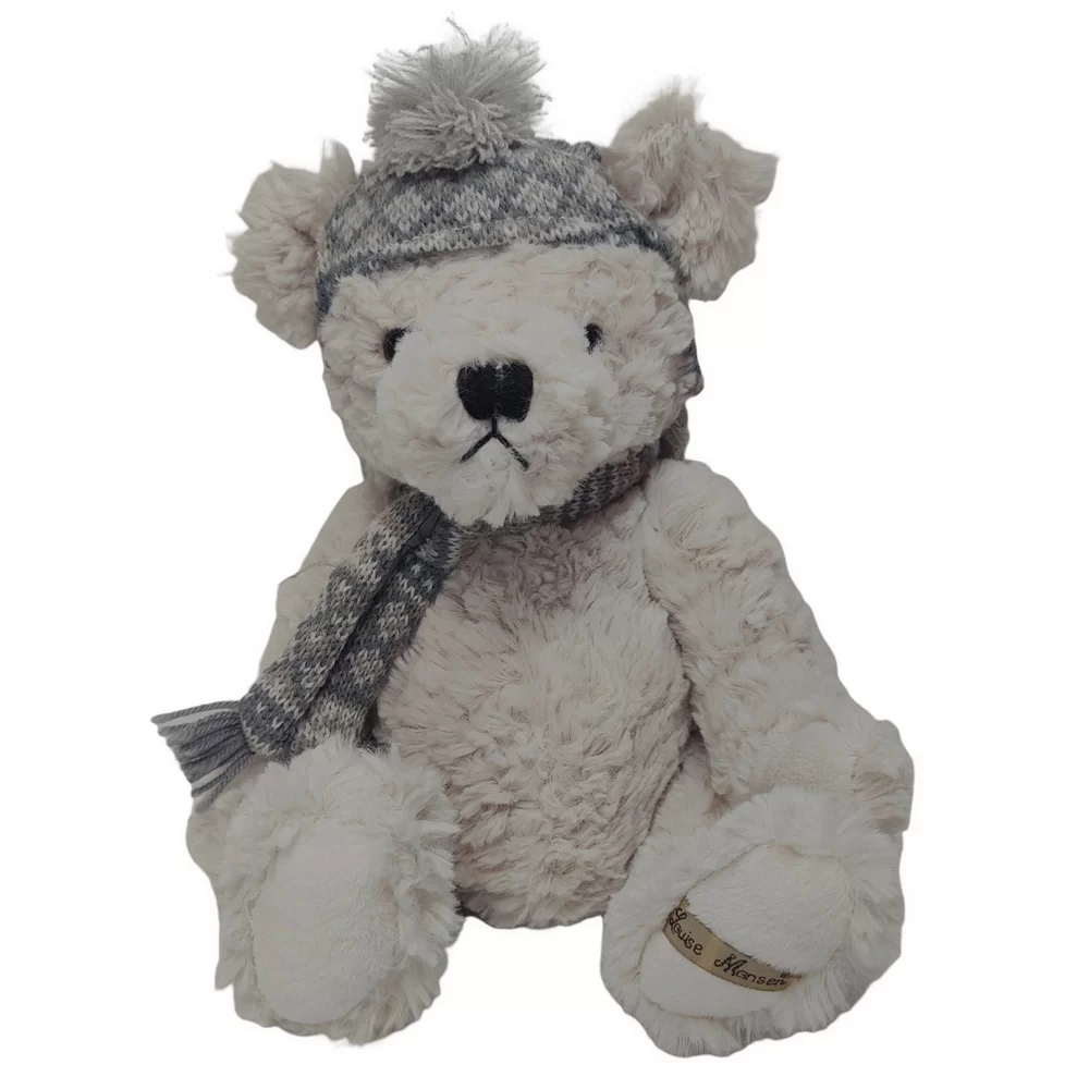 Craquez pour l’adorable peluche Eloan, un petit ours tout doux de 34 cm de hauteur. Il est habillé pour l’hiver avec un joli bonnet et une écharpe assortie en jacquard gris. Louise Mansen est à l’origine de cette peluche raffinée et pleine de tendresse.