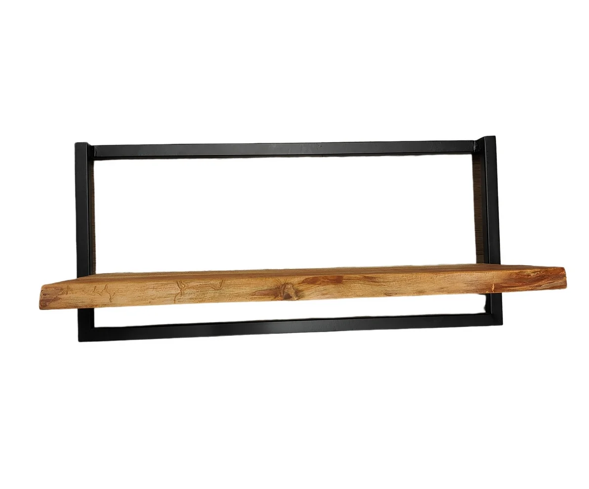 Etagère murale en métal noir et un rayon en bois de teck massif huilé