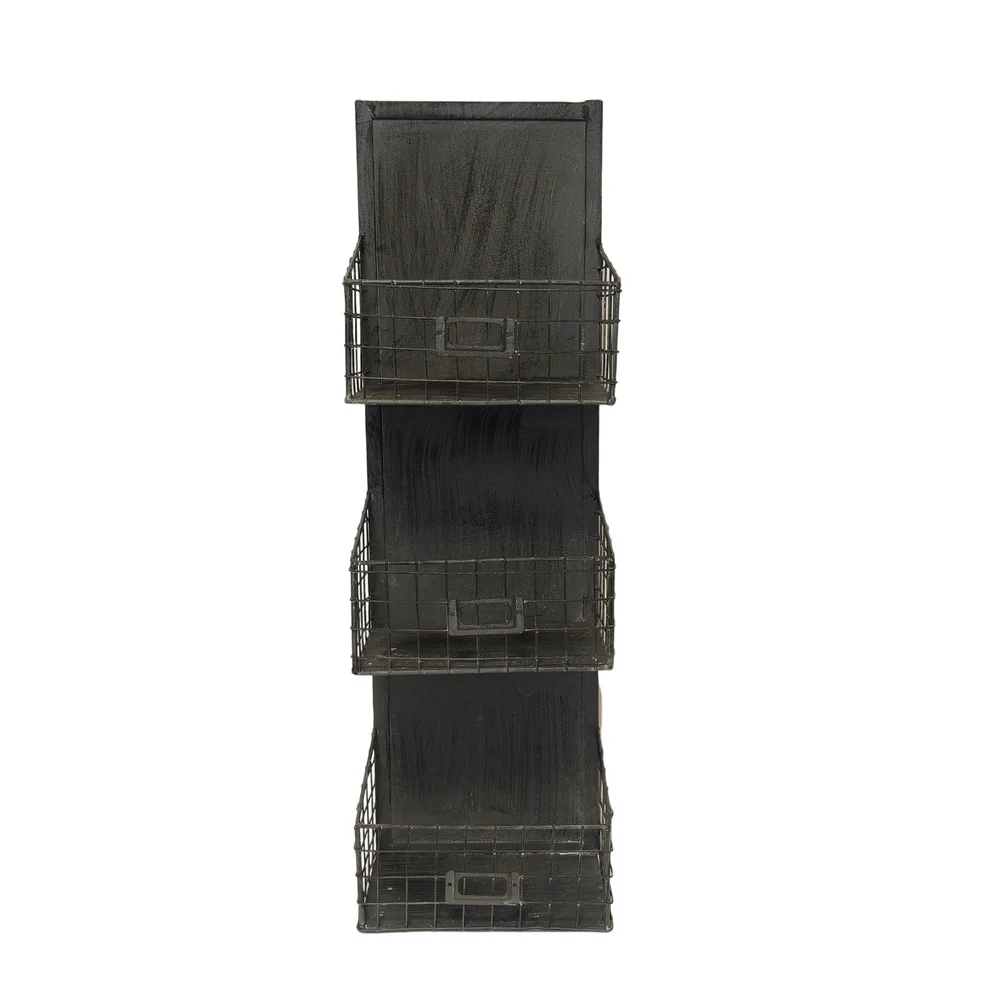 Coup de cœur pour cette longue étagère murale en métal gris patiné au look très factory avec ses 3 paniers et porte-étiquette. Pratique, elle peut être installée dans beaucoup de pièces.