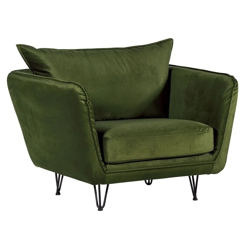 Hasting monolith Fauteuil droit 1.5 places Tissu velours couleur kaki 100% polyester. Hasting fauteuil 1.5 places Style et design contemporain – Structure en pin massif et panneaux de particules – Revêtement en tissu 100% polyester – Ferme – Garnis de mousse HR 35 kg/m3 sur ressort nosag – Avec accoudoirs – L’ensemble des coussins et dossier sont déhoussables Fabrication européenne – Fauteuil L 109 x P 95 x H 86 cm –