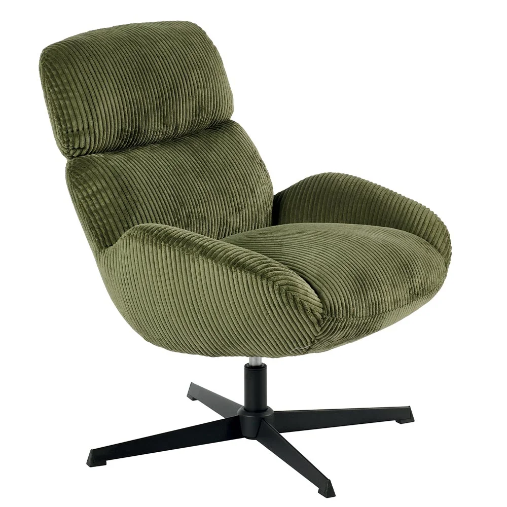 Fauteuil pivotant de collection Bissett en tissu velours grosses cotes Kaki.