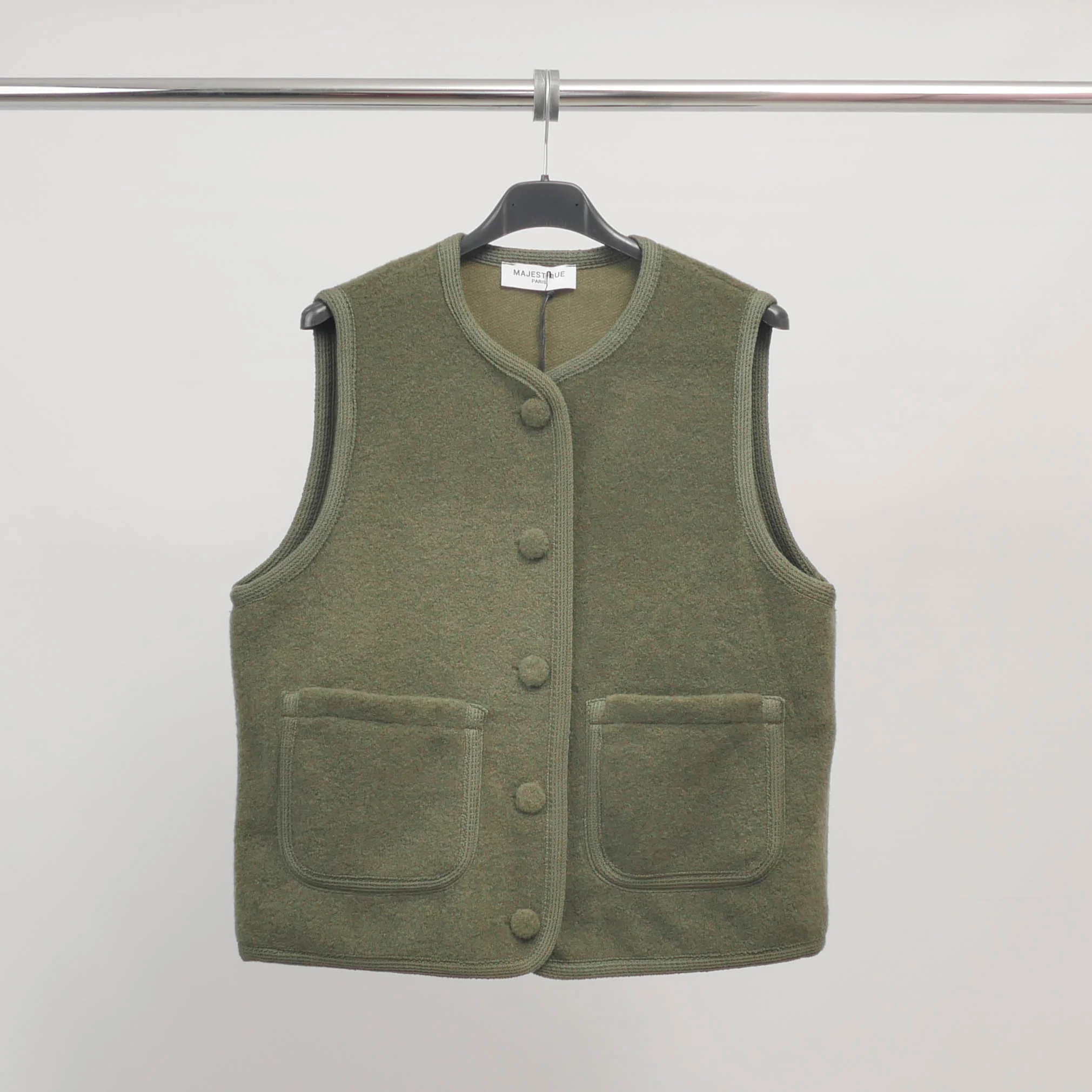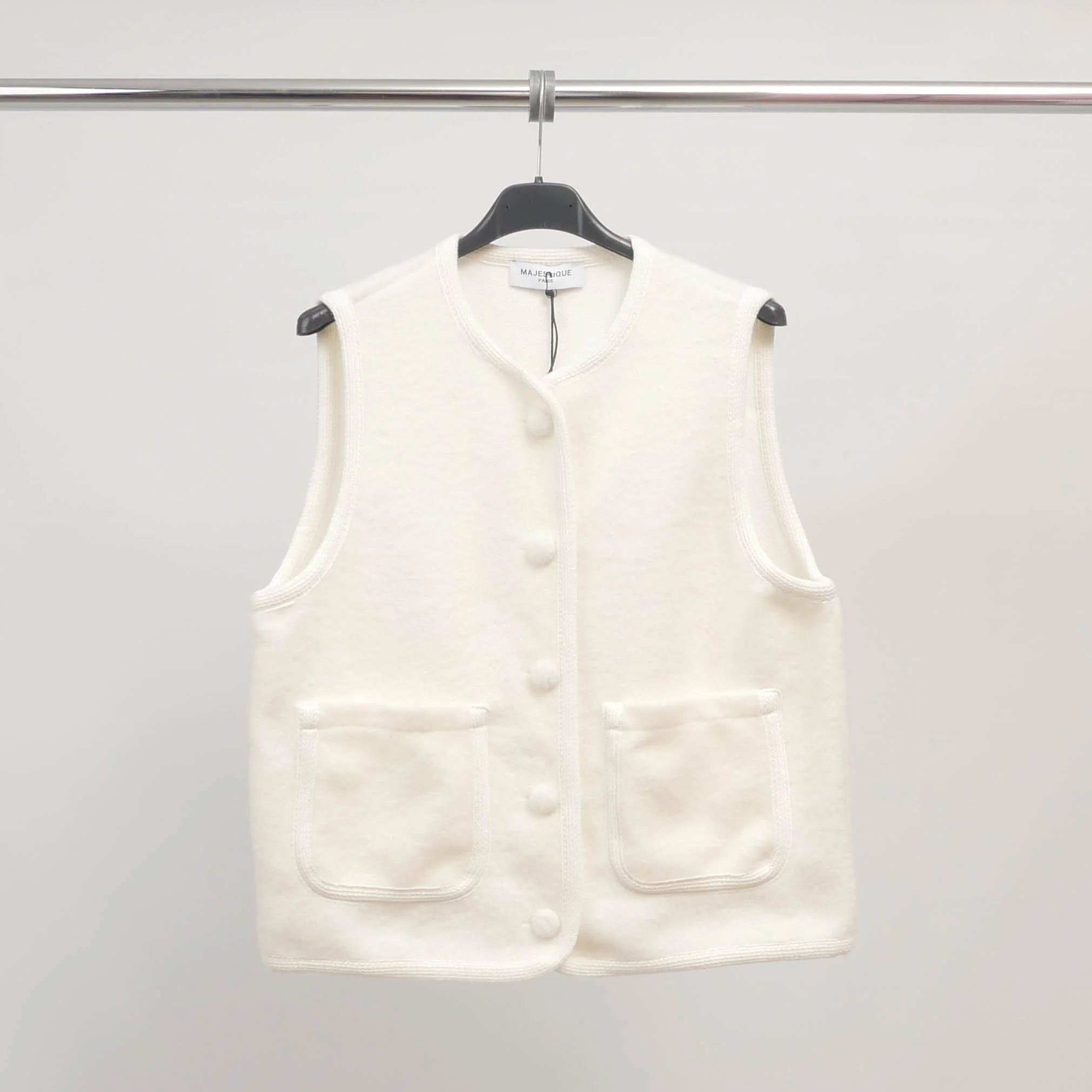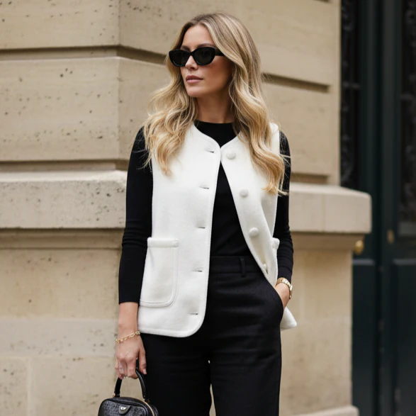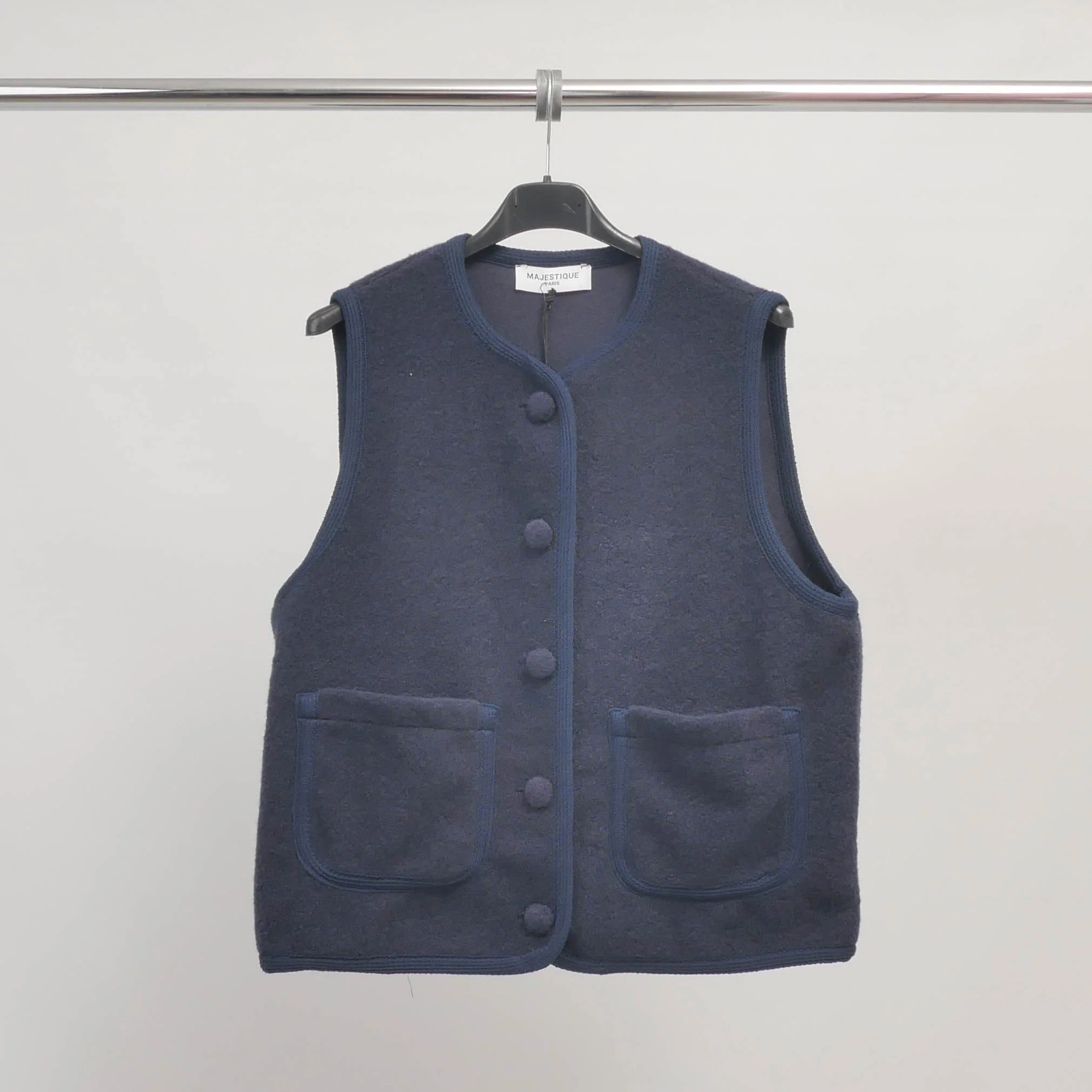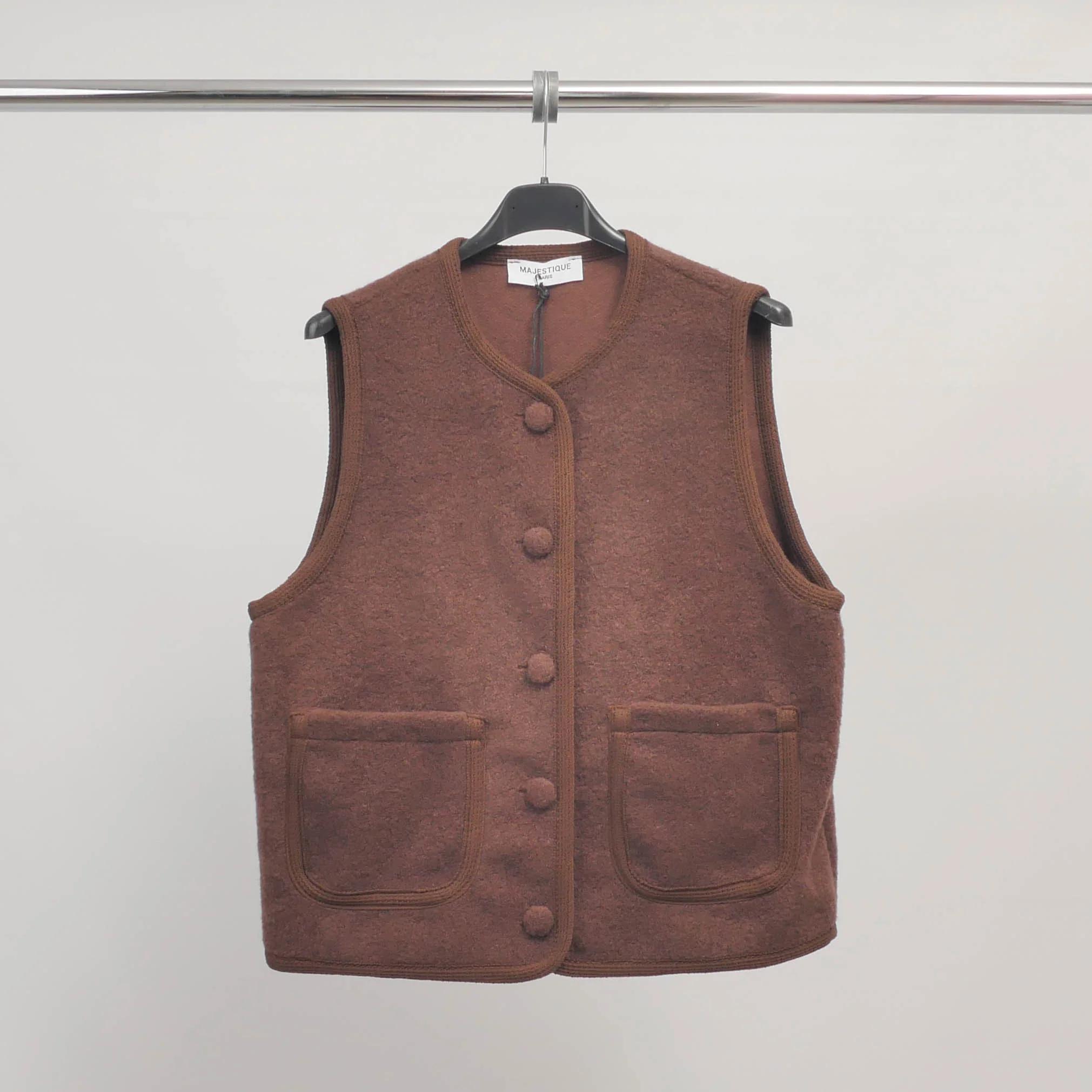 Une pièce fonctionnelle au charme rétro. Ce gilet sans manches séduit par sa texture douce effet laine bouillie et ses boutons recouverts ton sur ton qui lui confèrent une allure soignée. Sa coupe droite, son encolure ronde et ses deux poches plaquées en font un modèle à la fois pratique et confortable, à superposer au fil des saisons.