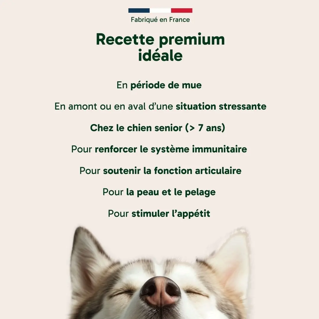 • Protection de l’organisme : Grâce à ses propriétés antioxydantes et anti-inflammatoires, elle protège le corps de votre chien contre les dommages des radicaux libres et aide à diminuer les inflammations.