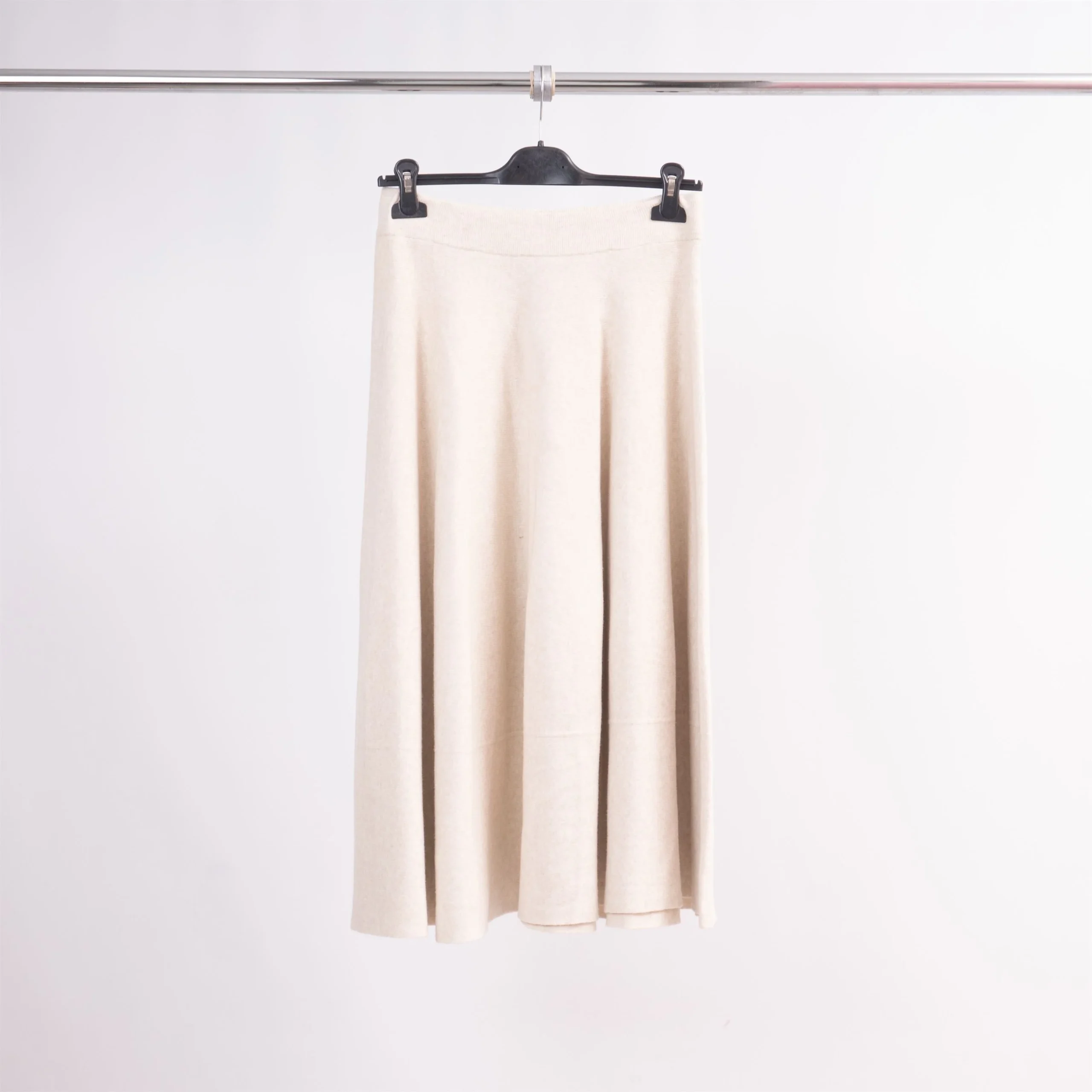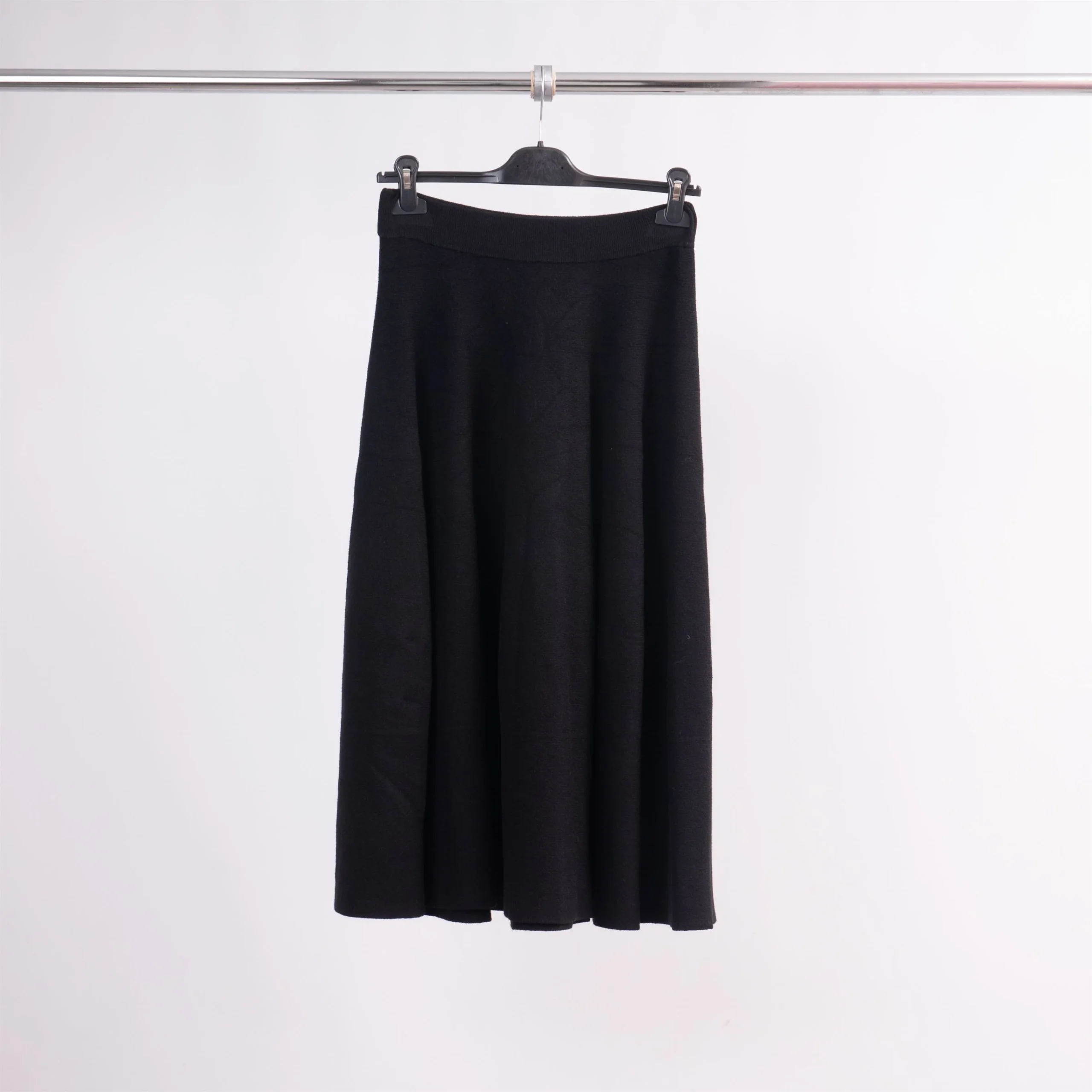 Élégante et facile à vivre, cette jupe en maille adopte une coupe évasée et un tombé fluide qui sublime le mouvement. Son design épuré met en valeur la silhouette tout en offrant un confort absolu grâce à sa taille élastiquée et son tricot doux et extensible.