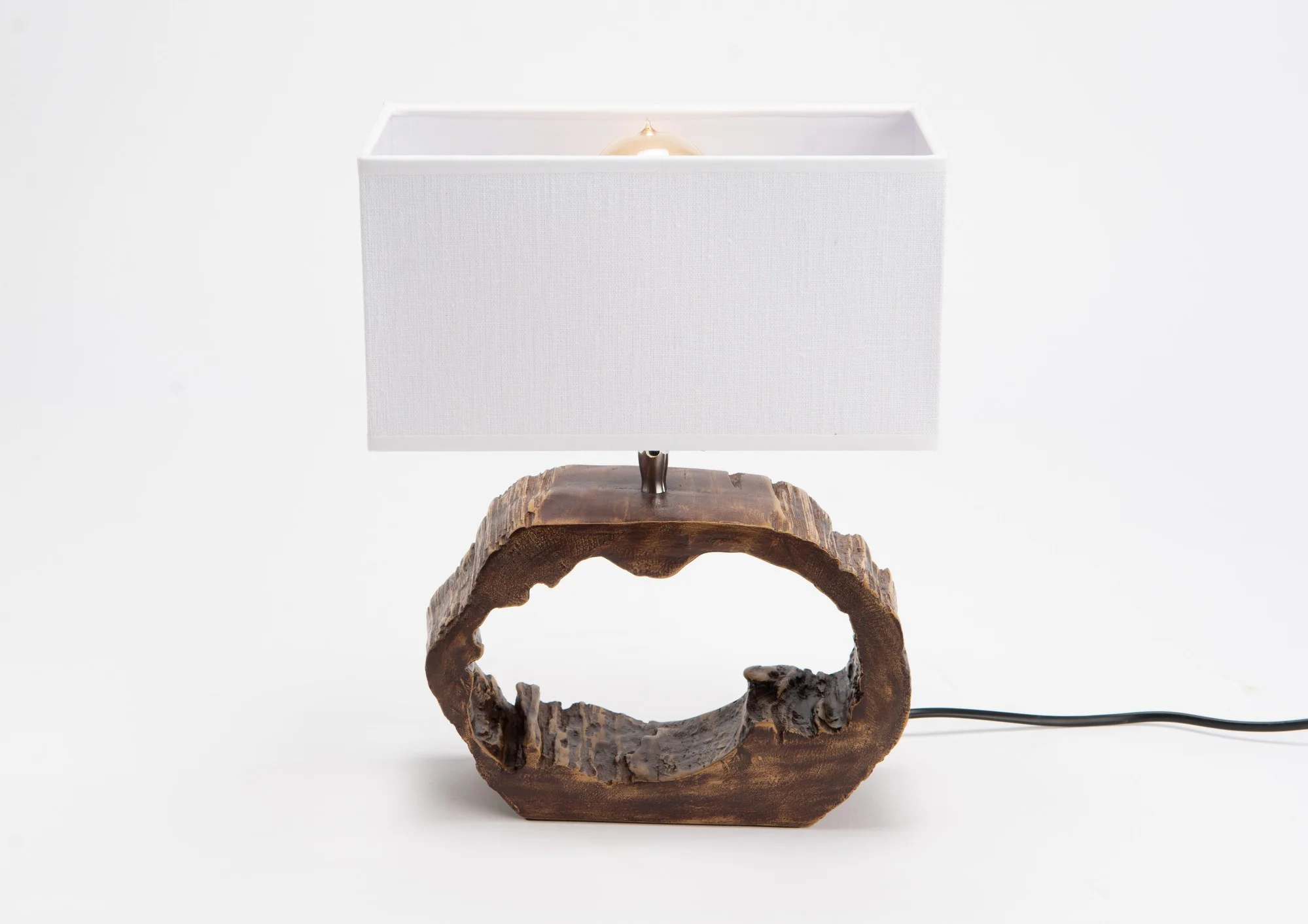 Cette lampe en résine imitation tronc d’arbre creusé et une réalisation originale.