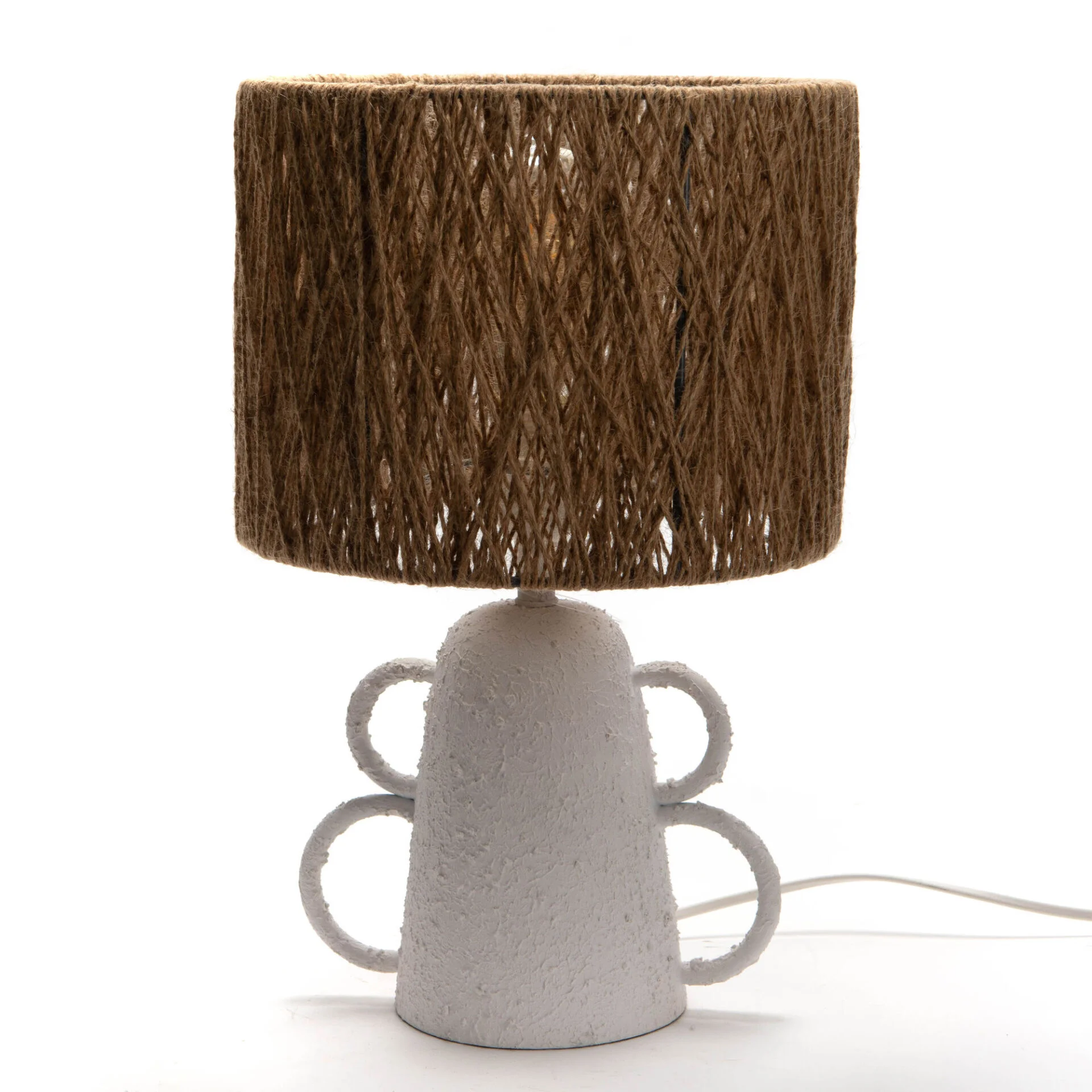 Lampe à poser modèle Casablanca en métal blanc et abat-jour en ficelle