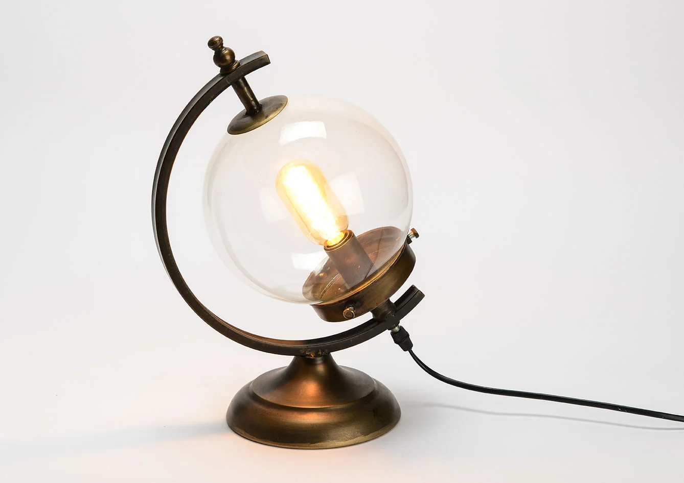 Conçu sur le même design qu’un globe terrestre, cette lampe à poser rendra votre bureau attrayant et plein d’inspiration. La protection en verre en forme de sphère qui entoure l’ampoule remplace la planète terre et apporte à l’objet une brillance au rendu chic. Grâce à sa structure en métal au fini vieilli, la lampe de bureau apportera une touche authentique à votre décoration, comme si elle vous racontait une histoire. Le travail ne sera plus un ennui, mais une source d’inspiration infinie!