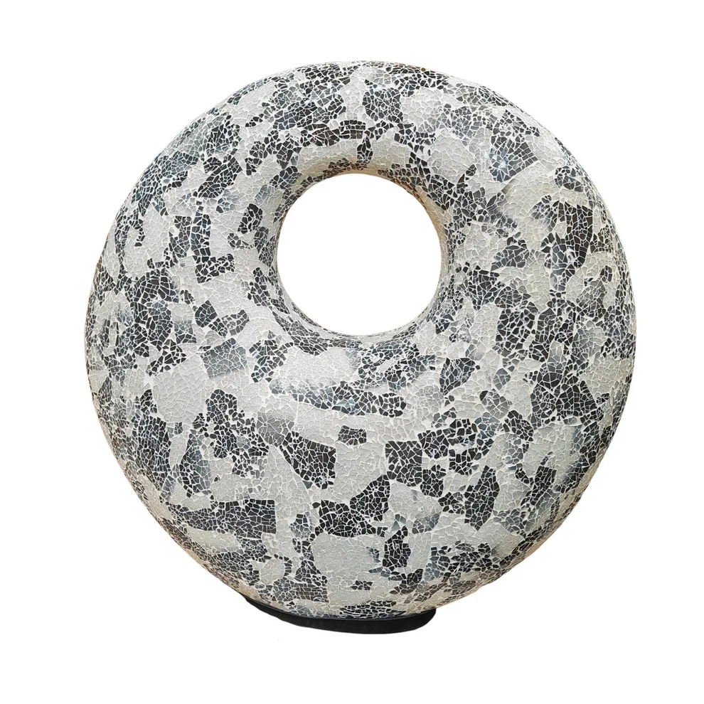 Gracieuse courbe pour cette grande lampe donut réalisée en mosaïque de verre.