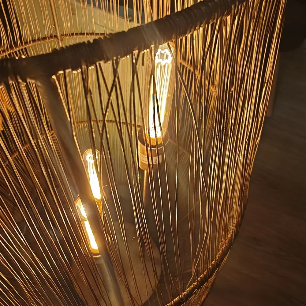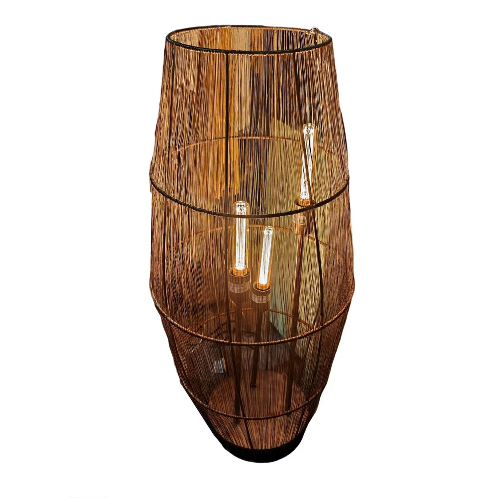 Lampe de sol façon lanterne en métal et fils de fer ajouré avec trois points de lumière