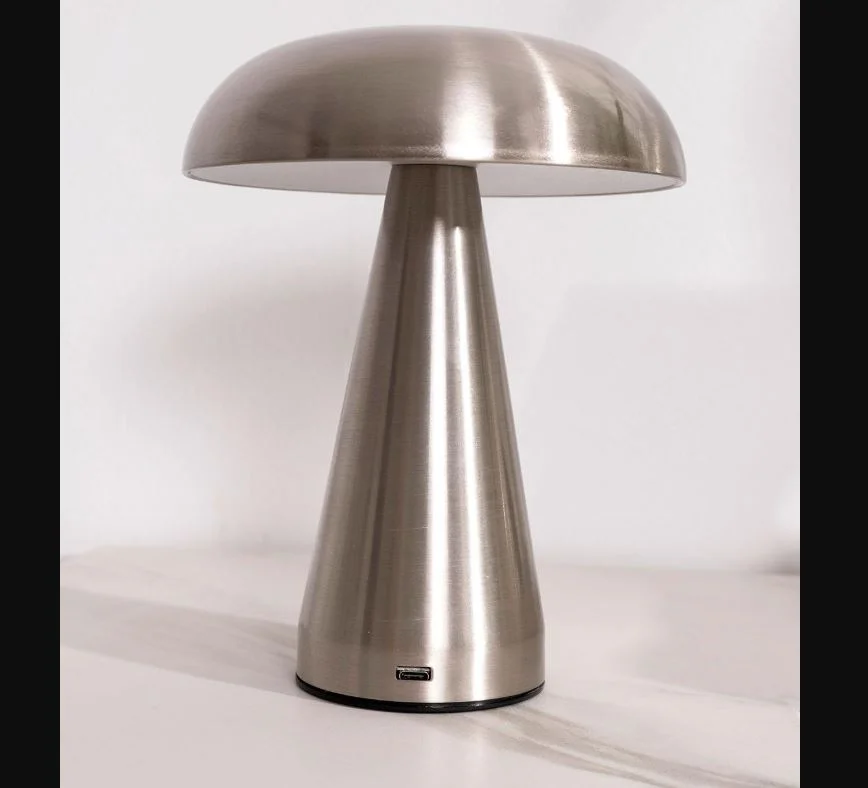 Lampe portable sur batterie en métal Champagne interrupteur tactile.
