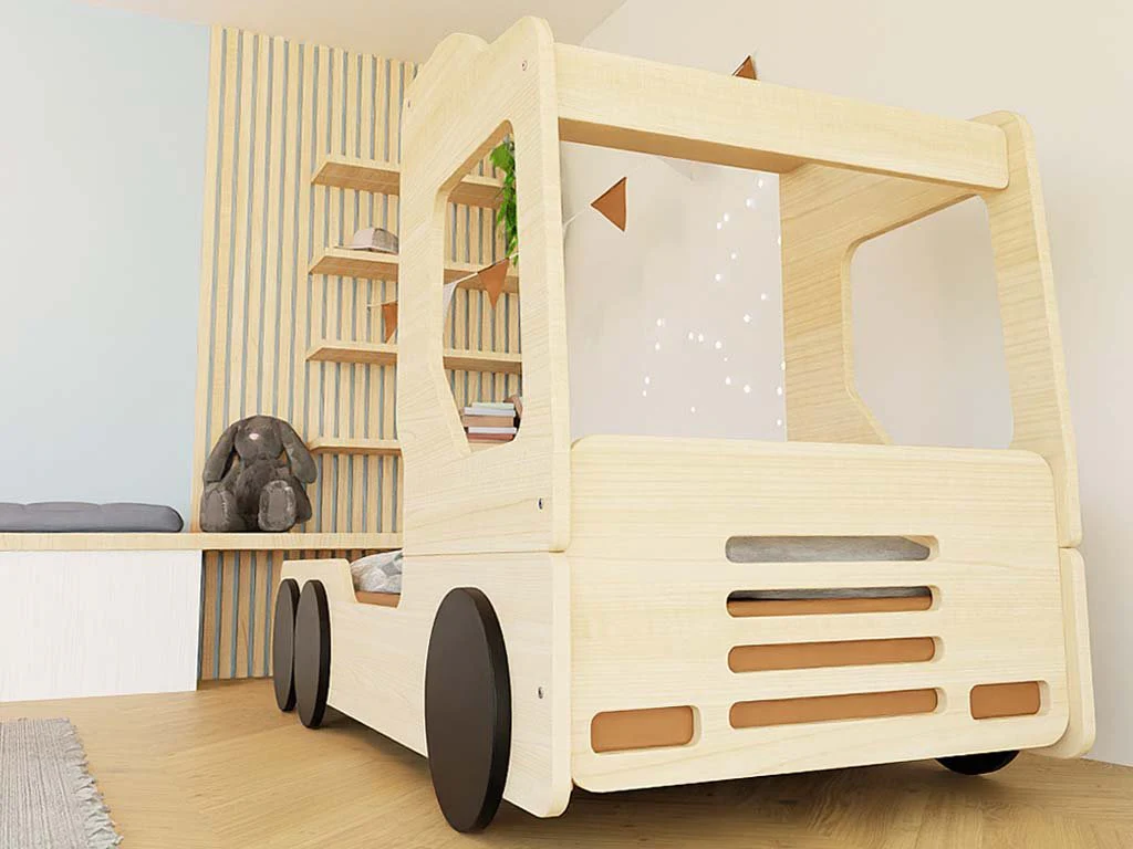 - Lit ludique : Forme camion transformant chambre en aire de jeu et espace d’imaginaire