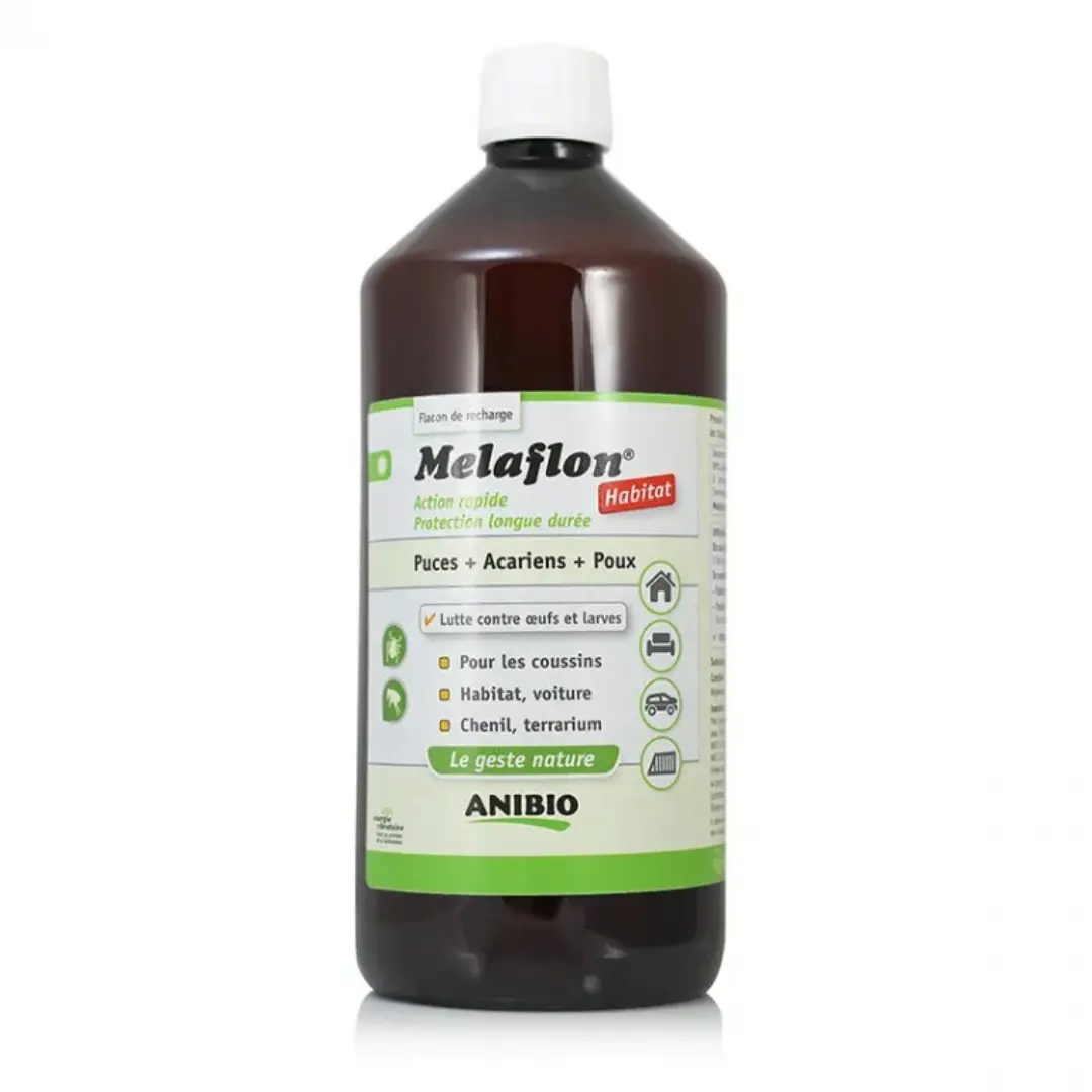 Melaflon recharge Antiprasitaire de la marque AniBio est un antiparasitaire naturel à usage externe, conçu pour protéger votre animal de compagnie contre les tiques, les puces et les acariens.