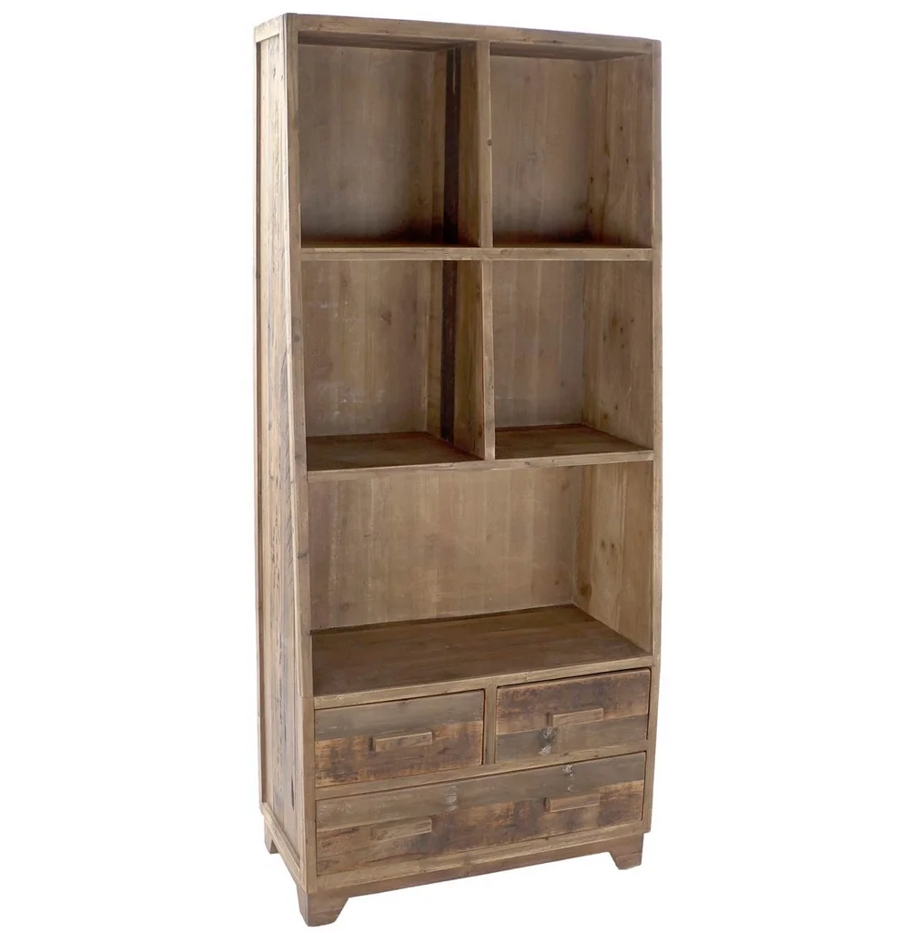 Meuble étagère multi-niveaux avec trois tiroirs en bois recyclé vieilli. Optez pour une solution de rangement pratique et peu encombrante en choisissant le meuble étagère avec tiroirs. 3 niveaux de rayons parfaitement adaptés pour accueillir vos objets décoratifs tout en les mettant en valeur. D’un coloris bois ciré il pourra s’accommoder très facilement à tout type de décoration.