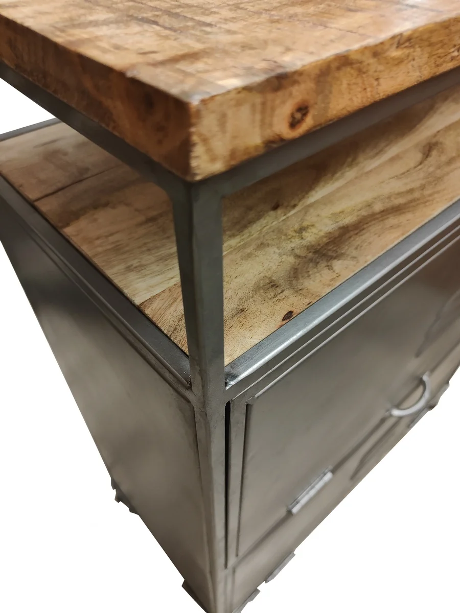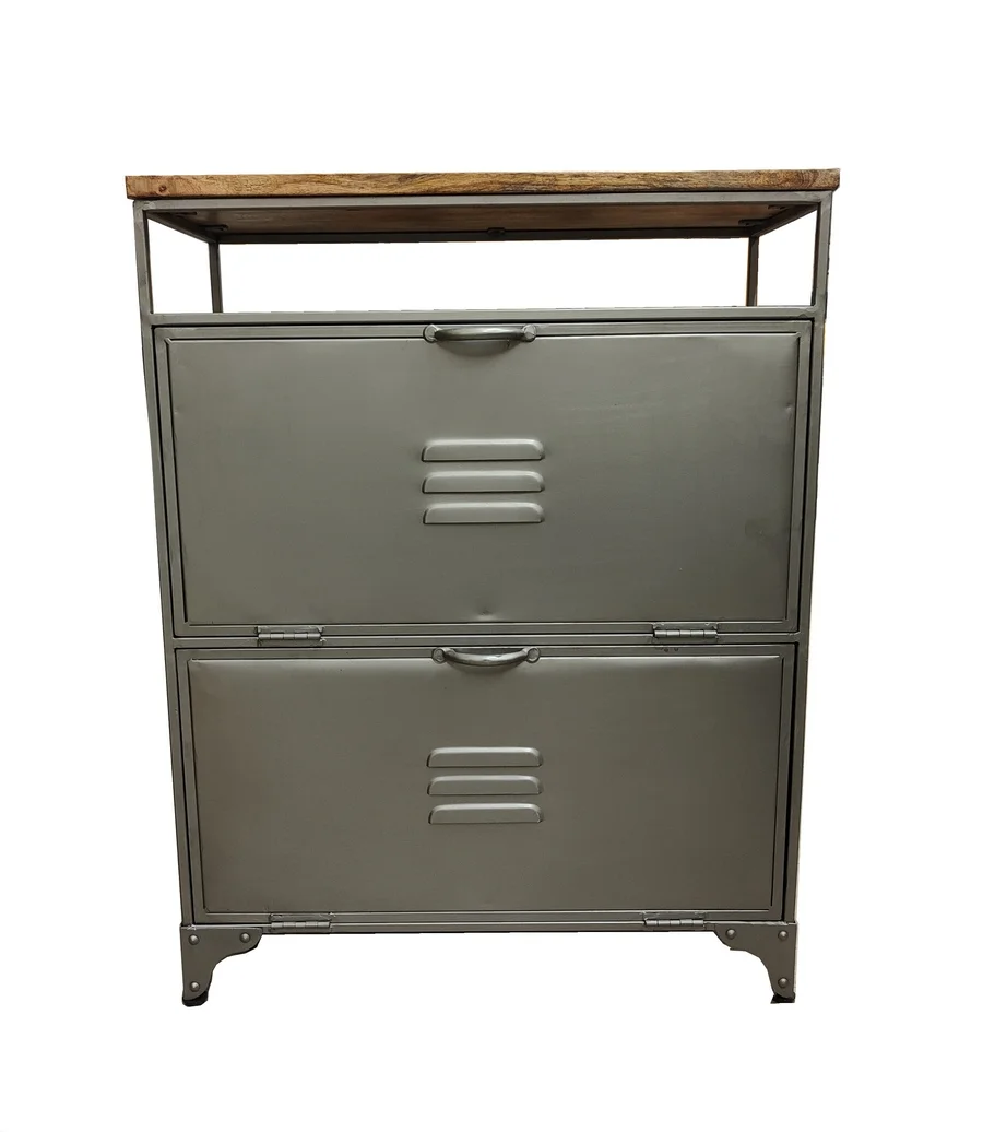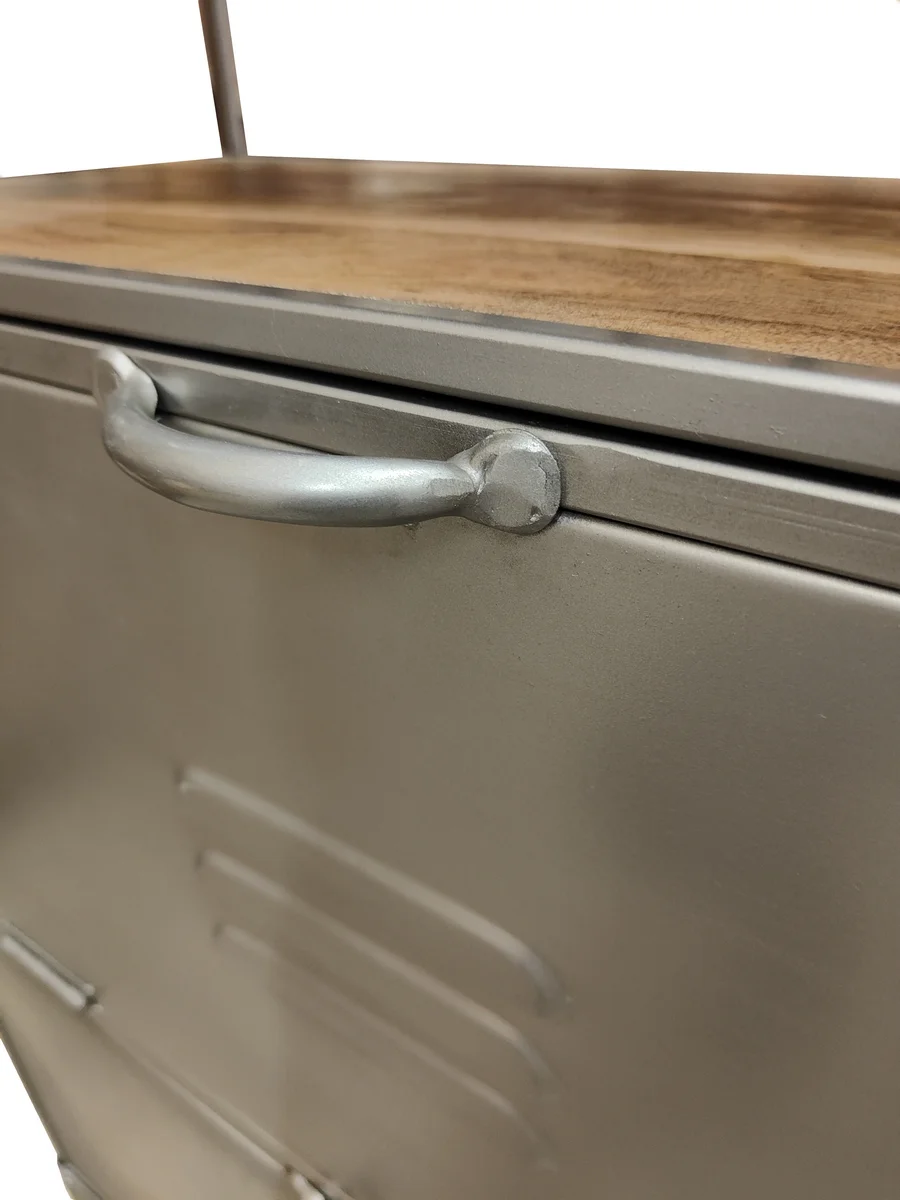 Placé dans l’entrée, le meuble à chaussures en métal et manguier massif ne manquera pas de se faire remarquer. Rivets et aérations… Tout en métal vieilli, il a été pensé pour recréer les mobiliers indus d’antan. Les petits plus de ce meuble à chaussures ? Ses deux grands tiroirs, qui garderont vos souliers à l’abri, et sa niche et avec le dessus du meuble en manguier massif, qui mettra en valeur une plante ou un bel objet déco.