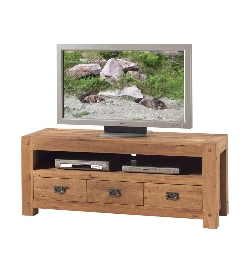 Le meuble TV 3 tiroirs sur rails, en chêne huilé