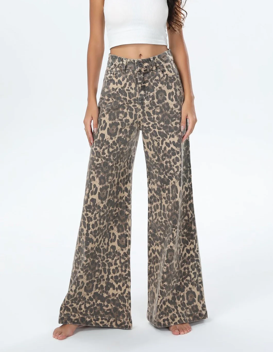 Ajoutez une touche audacieuse et tendance à votre garde-robe avec ce pantalon large en coton au motif léopard. Conçu pour allier confort et style, il se distingue par sa coupe fluide et évasée qui offre une grande liberté de mouvement, idéale pour toutes les morphologies.