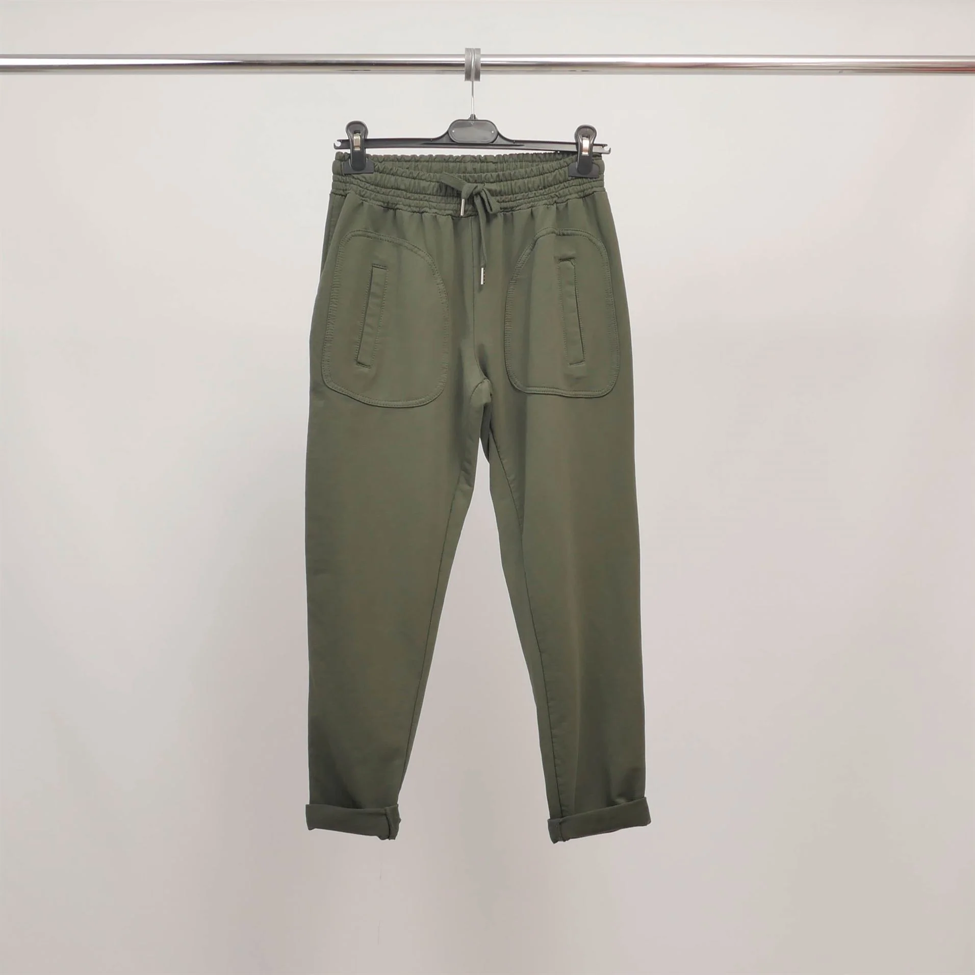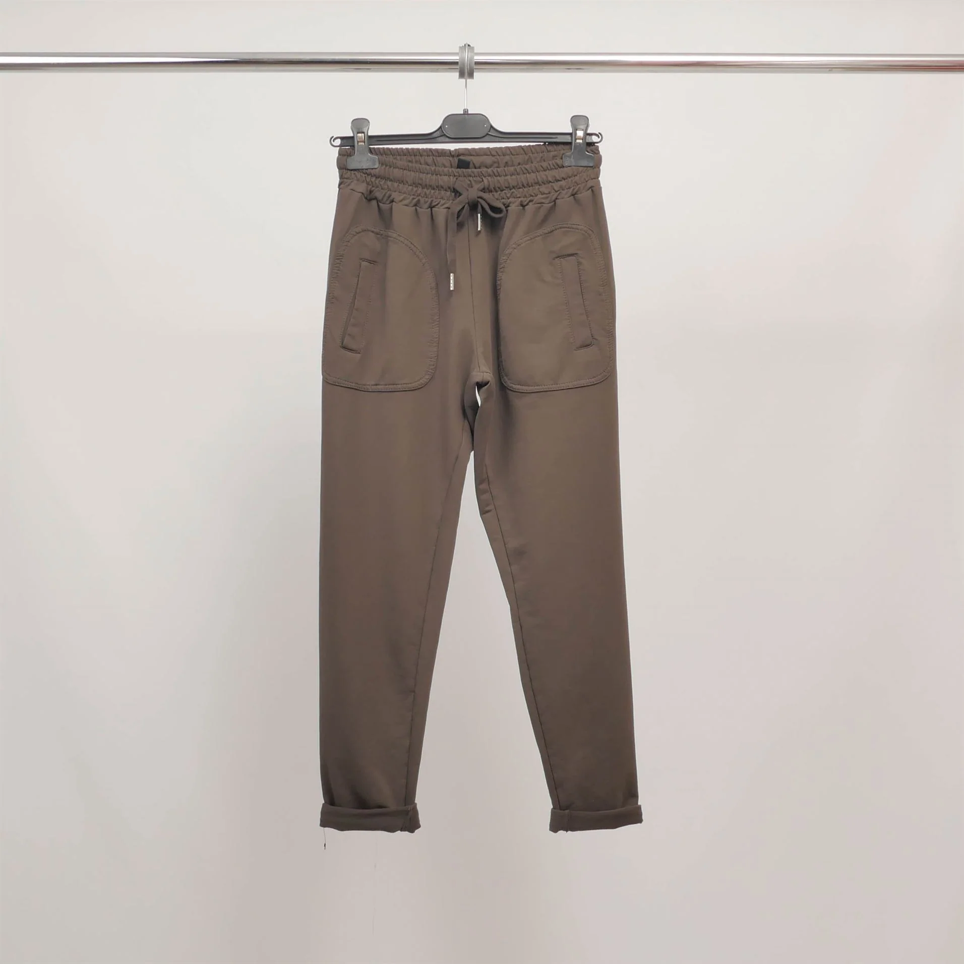 Un incontournable du vestiaire casual qui allie confort et style. Ce pantalon façon jogging se distingue par sa taille élastiquée avec cordon de serrage et ses grandes poches plaquées sur le devant, pour un look résolument moderne et fonctionnel. Sa coupe fuselée et ses bas de jambes légèrement retroussés soulignent une silhouette dynamique, tandis que sa matière douce et extensible accompagne vos mouvements tout au long de la journée. Parfait pour un style décontracté chic, à porter avec un sweat ample ou une chemise structurée.
