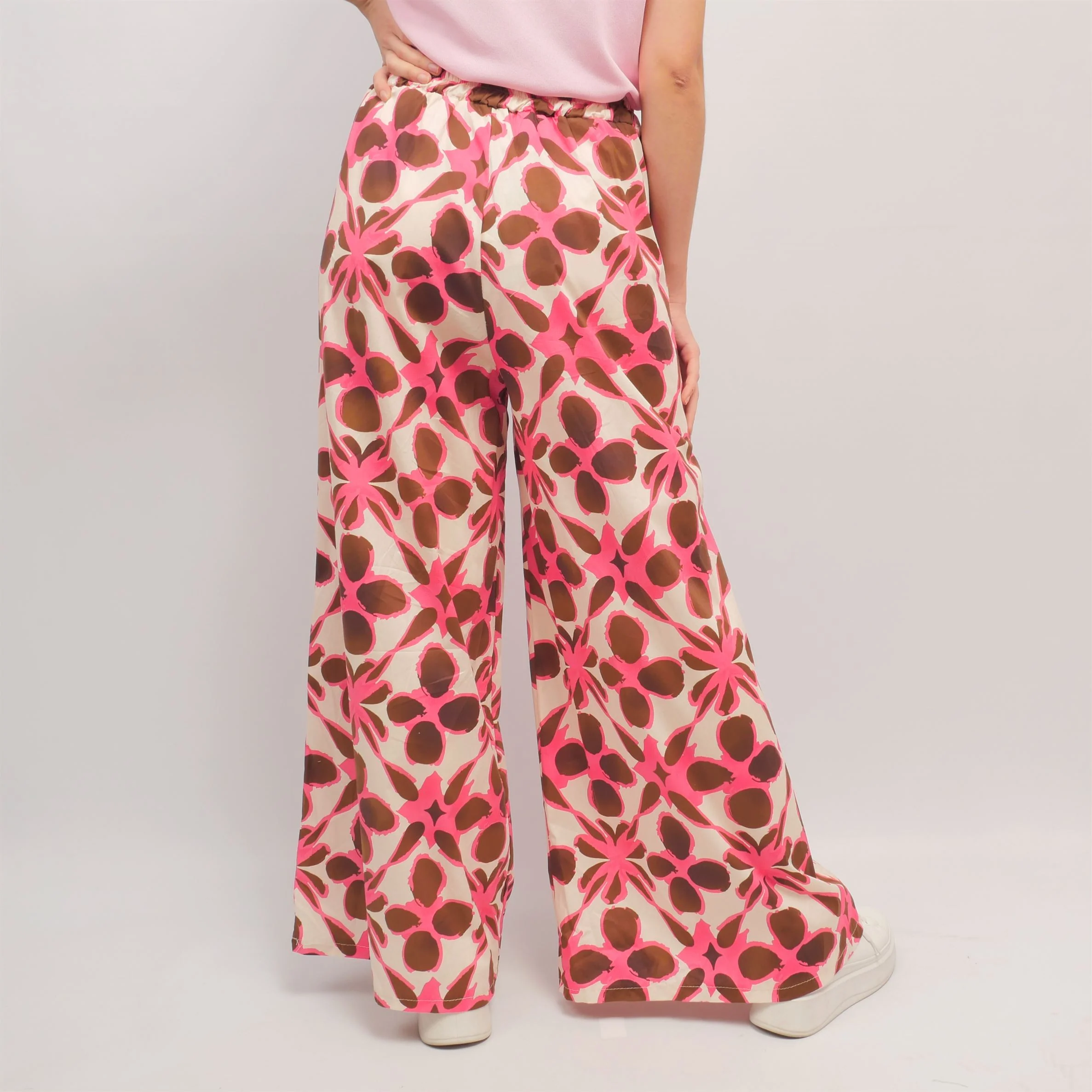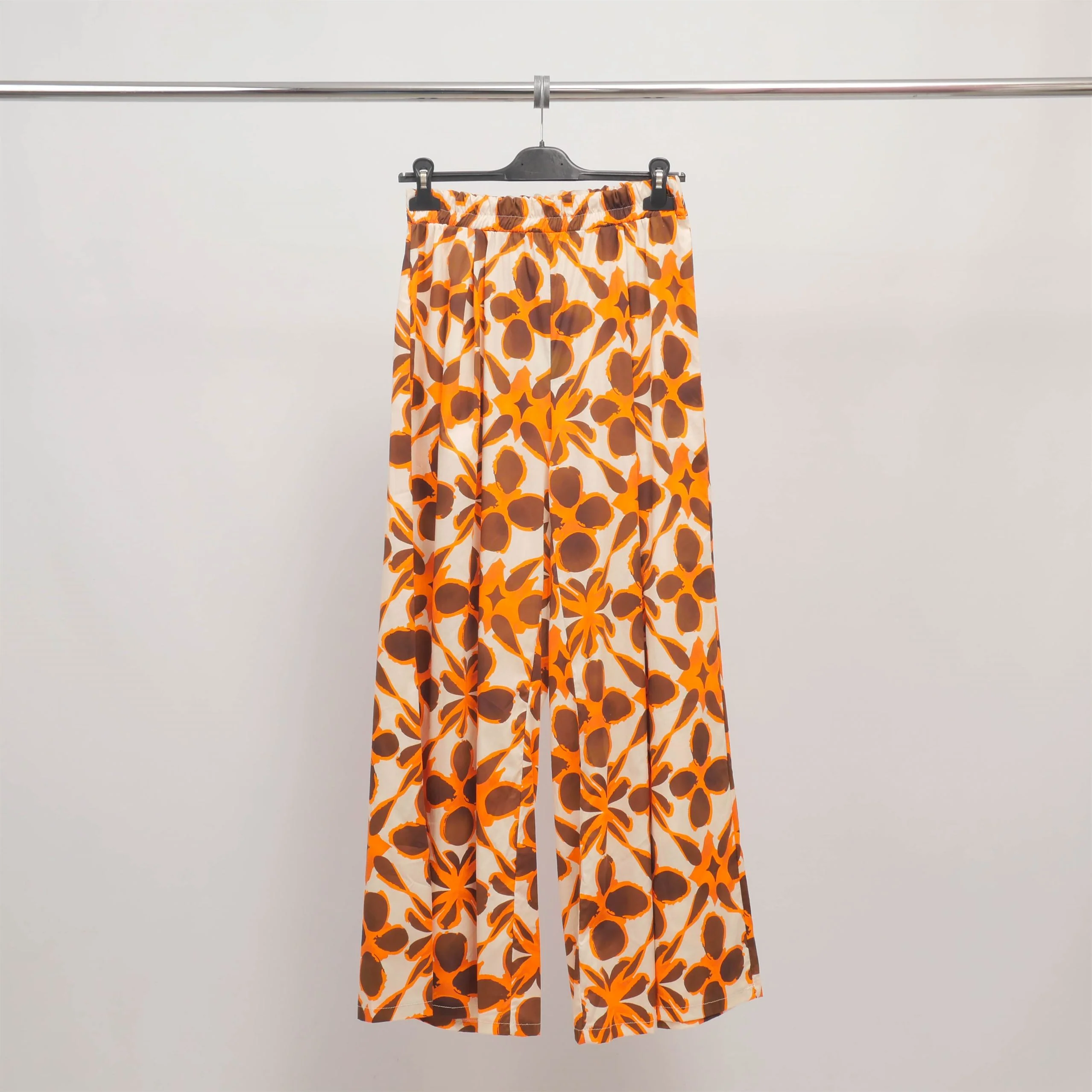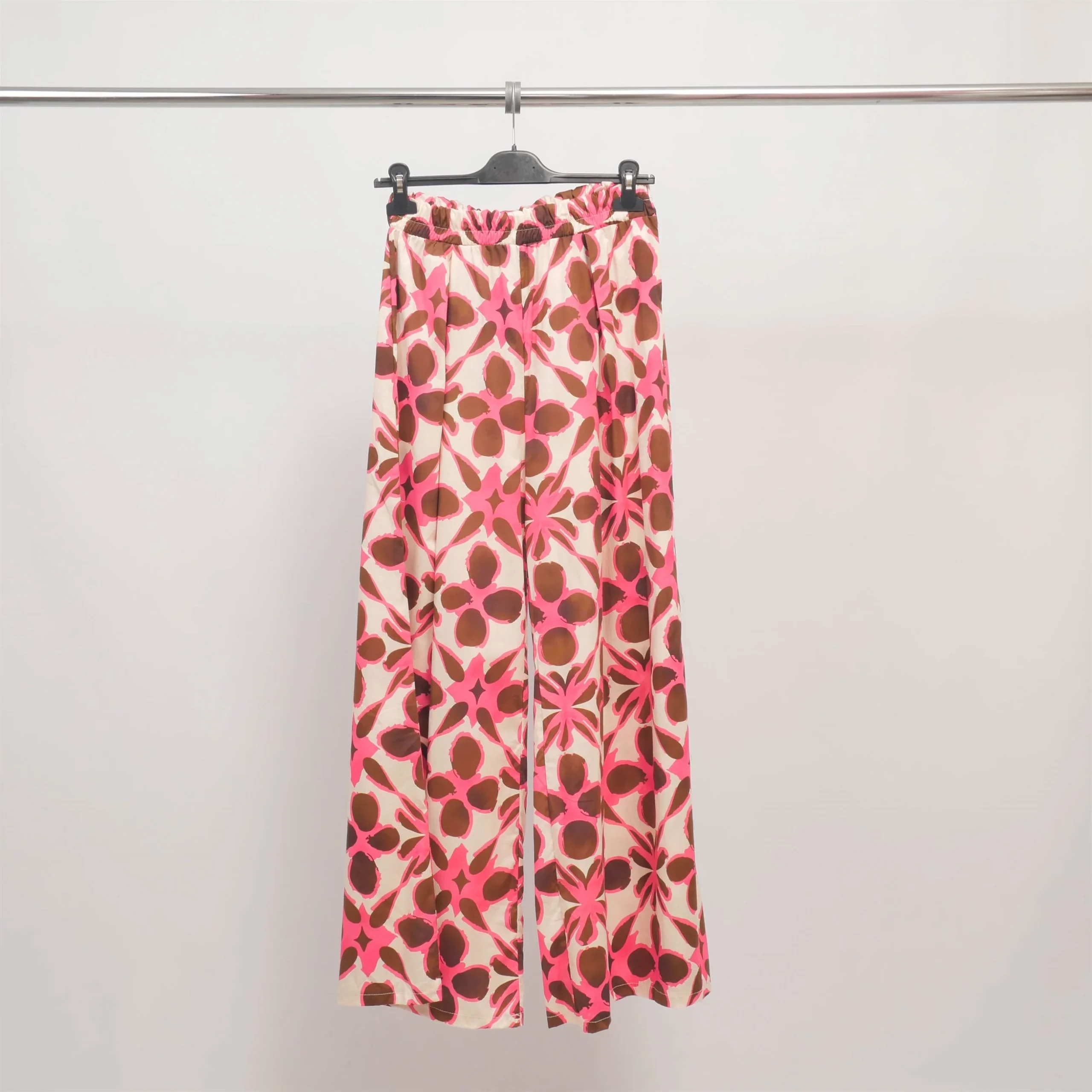 L’audace des motifs rencontre le confort absolu dans ce pantalon large à l’imprimé floral éclatant.