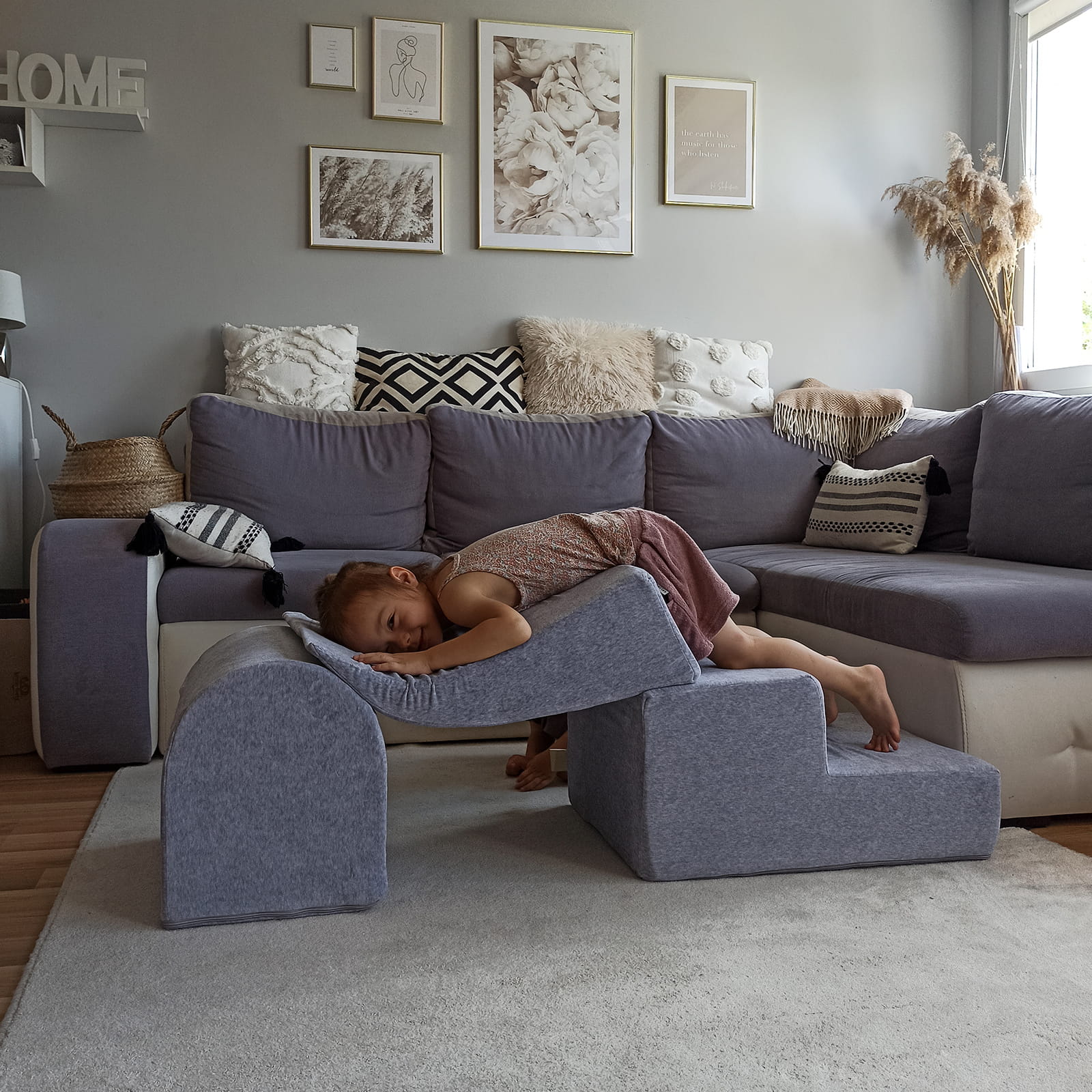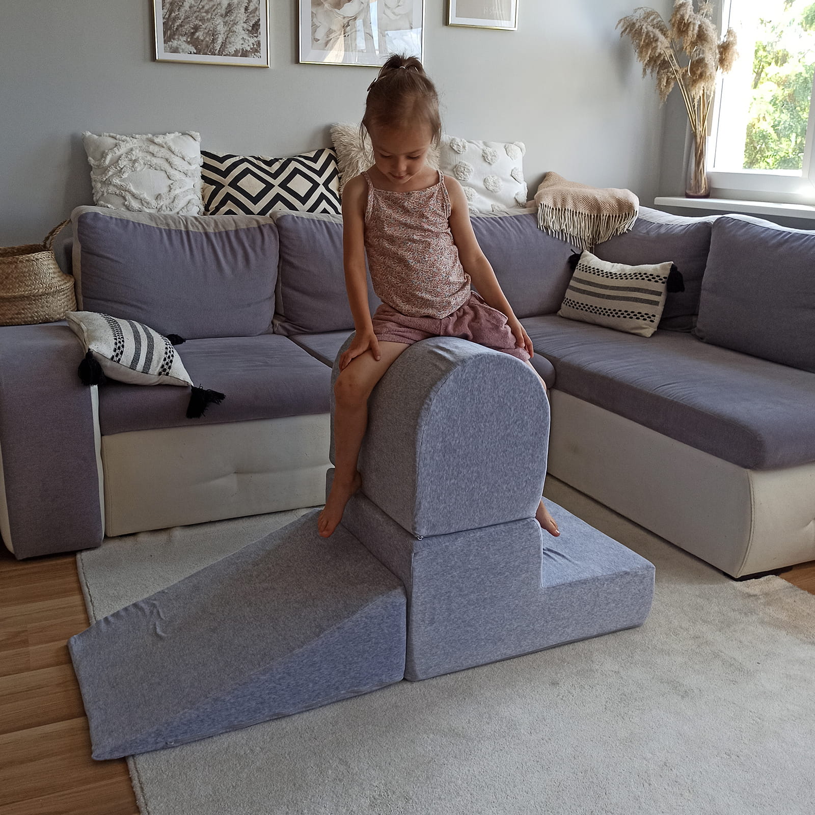 Avec ses modules aux formes variées et rembourrés en mousse, le parcours de motricité est idéal pour créer chez soi une aire de jeu que nos enfants modifieront au gré de leurs envies.