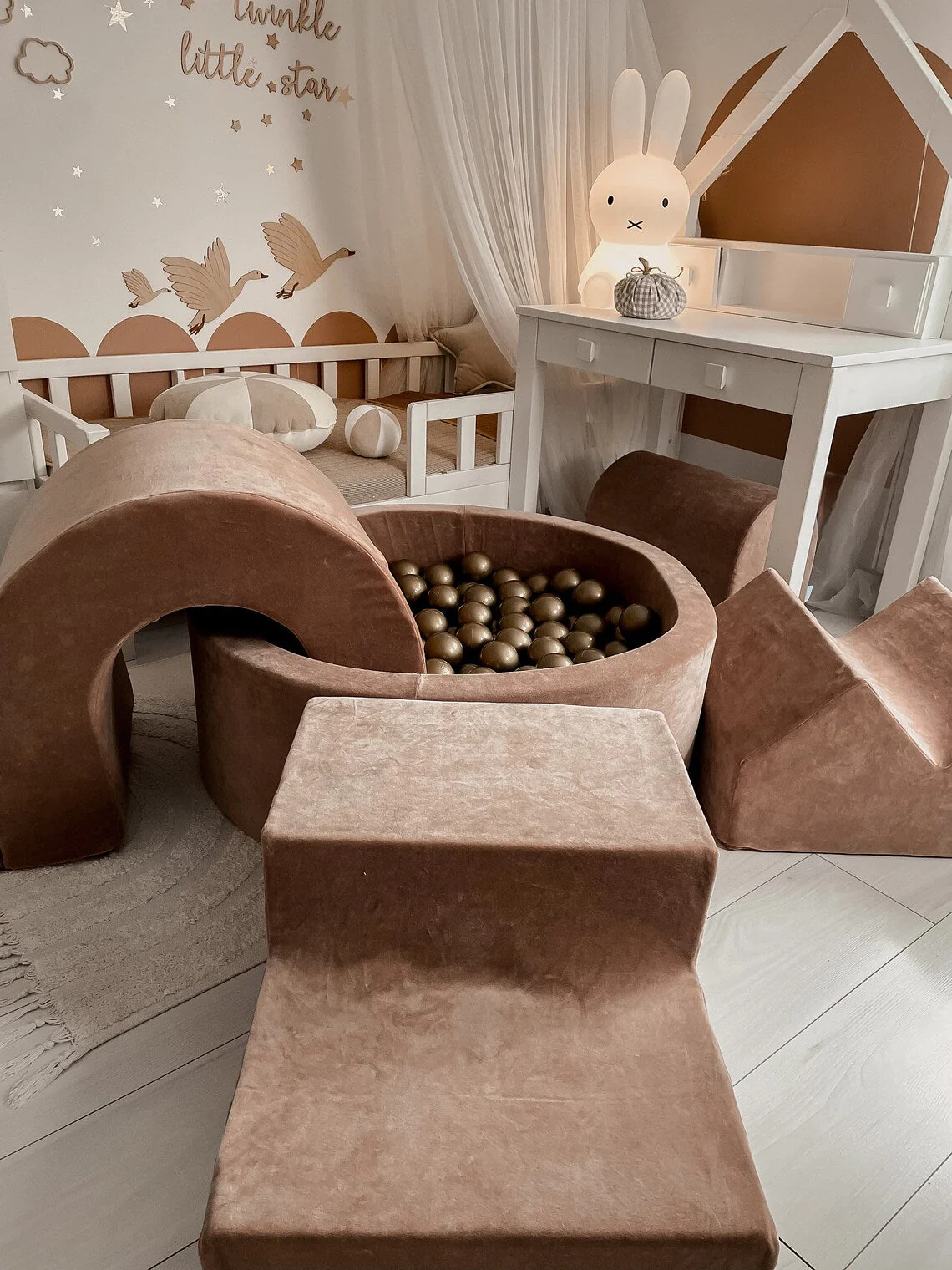 Avec ses modules aux formes variées et rembourrés en mousse, le parcours de motricité est idéal pour créer chez soi une aire de jeu que nos enfants modifieront au gré de leurs envies.
