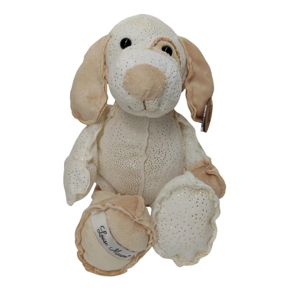 La peluche chien SAM de Louise Mansen est de couleur blanc pailleté et marron à la texture douce et soyeuse, accompagnera votre enfant dès sa naissance. Cette superbe peluche saura satisfaire les petits mais aussi les grands !