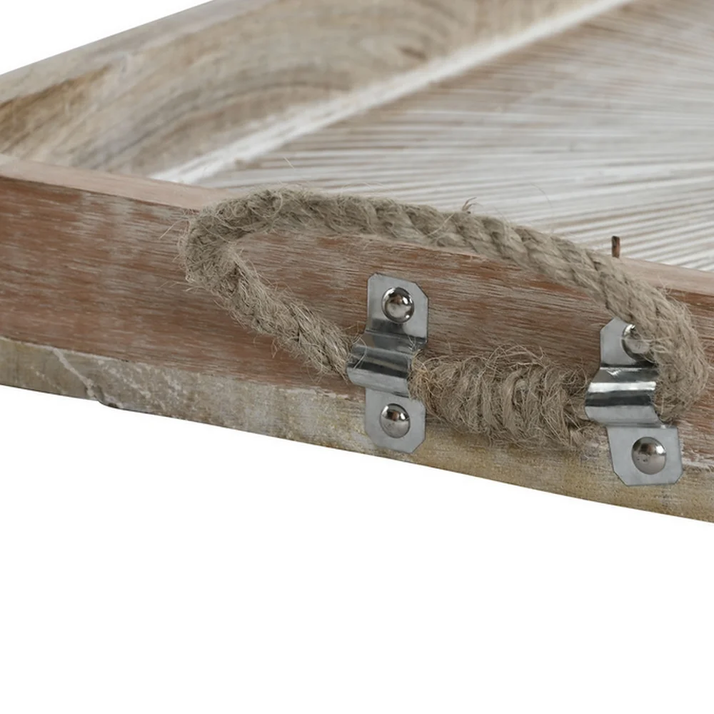Plateau de service rectangulaire en bois de manguier blanchi.