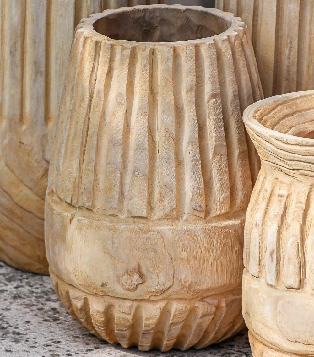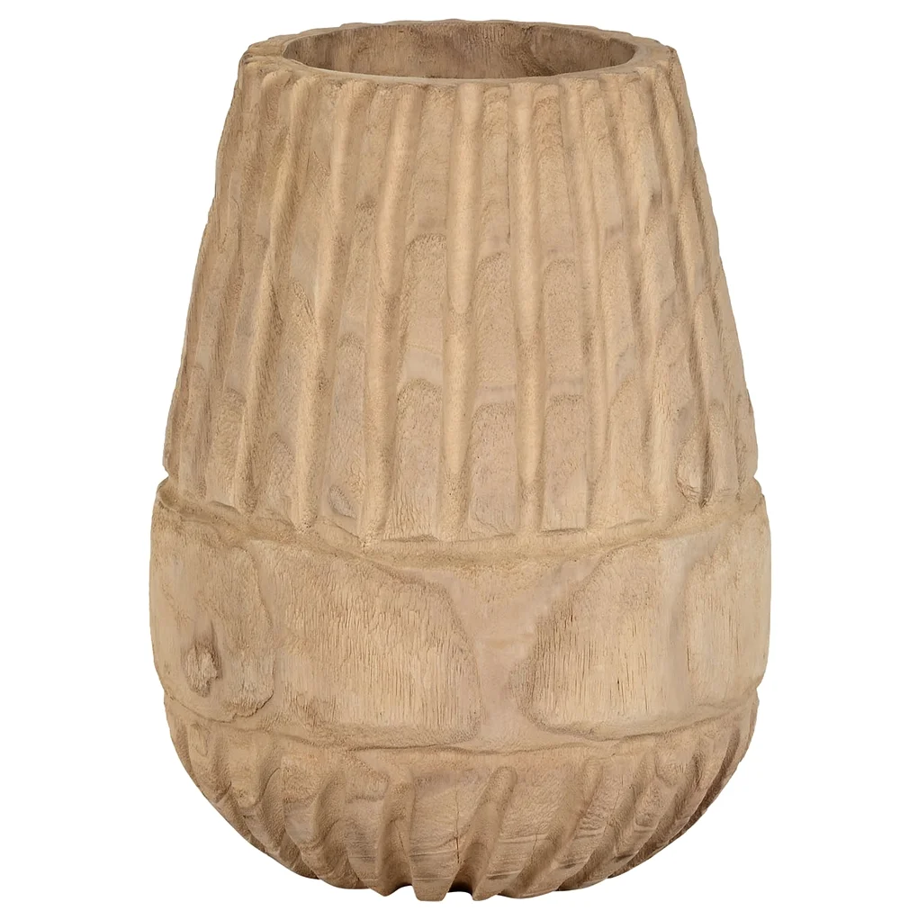 Pot de fleurs en bois de paulownia sculpté , laissé brut. Ce pot apportera à votre décoration une touche vintage, pour un résultat authentique. Le bois laissé à l’état brut permet une multitude de combinaisons de styles, pour laisser parler votre créativité.