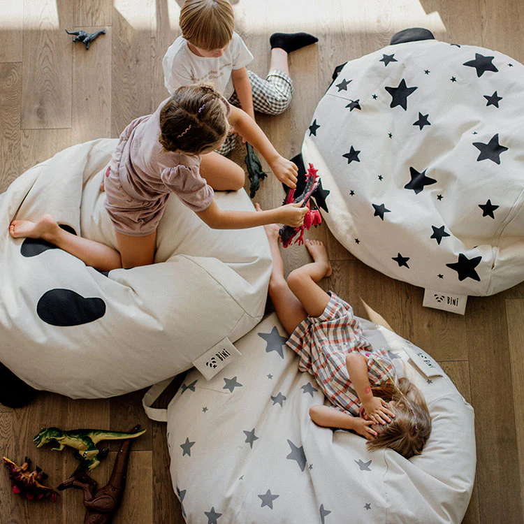 Ce pouf géant en forme de poire n’est pas qu’une assise pour votre enfant, c’est aussi son support de jeu, de guilis, de bisous, et plus !