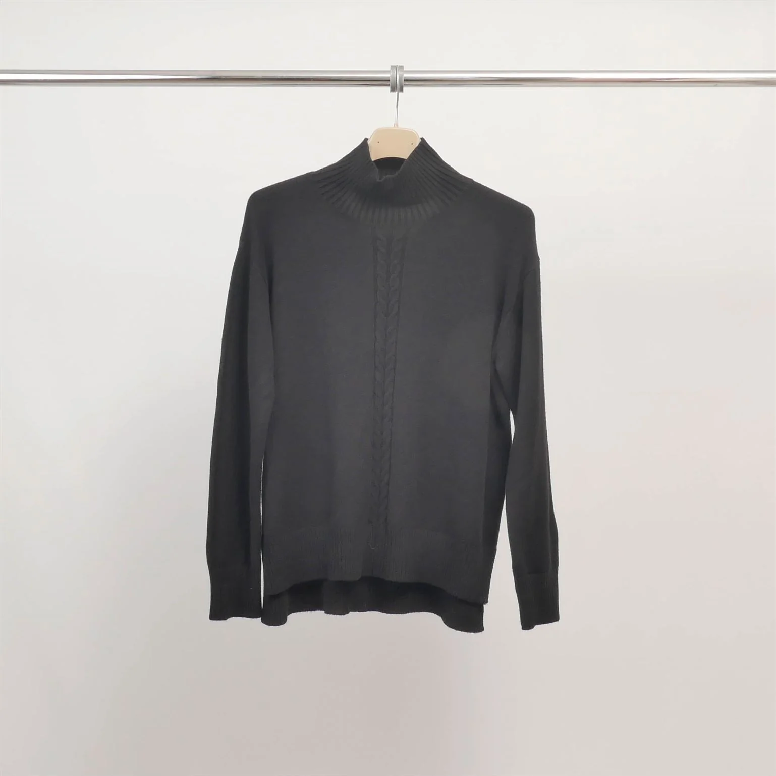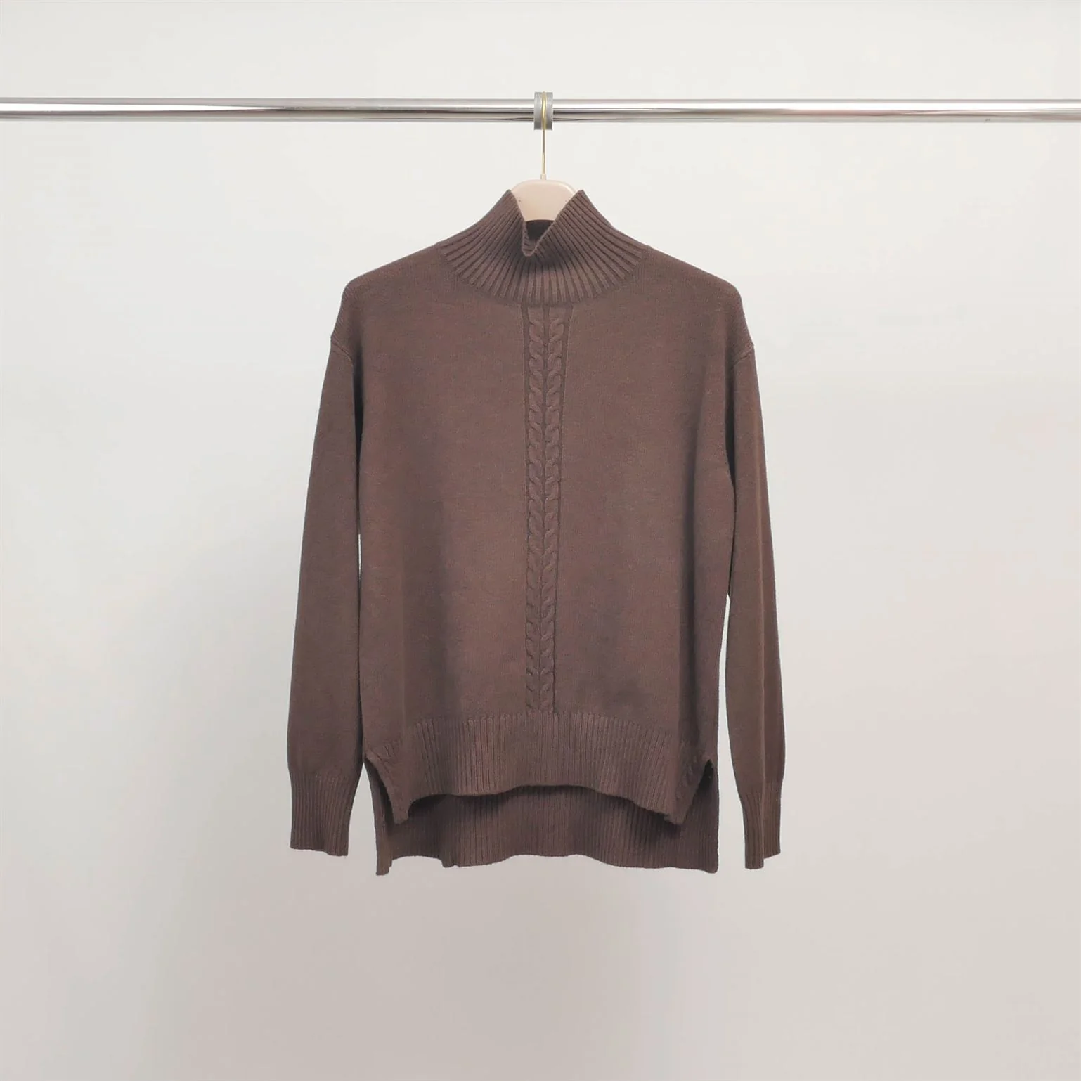 Un basique revisité avec élégance : ce pull col montant séduit par son jeu de maille torsadée discret sur le devant. Sa coupe droite légèrement ample, son dos plus long et ses fentes latérales assurent confort et modernité au quotidien.
