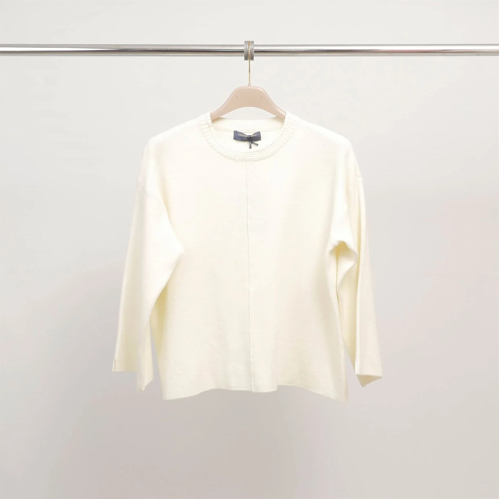 Un essentiel du vestiaire revisité avec subtilité. Ce pull col rond séduit par sa maille lisse ponctuée d’un discret détail côtelé à l’encolure et d’une couture apparente au centre. Ses manches longues et sa coupe droite légèrement ample assurent un tombé fluide et confortable, idéal au quotidien. Léger mais structuré, il accompagne la mi-saison avec style et simplicité.